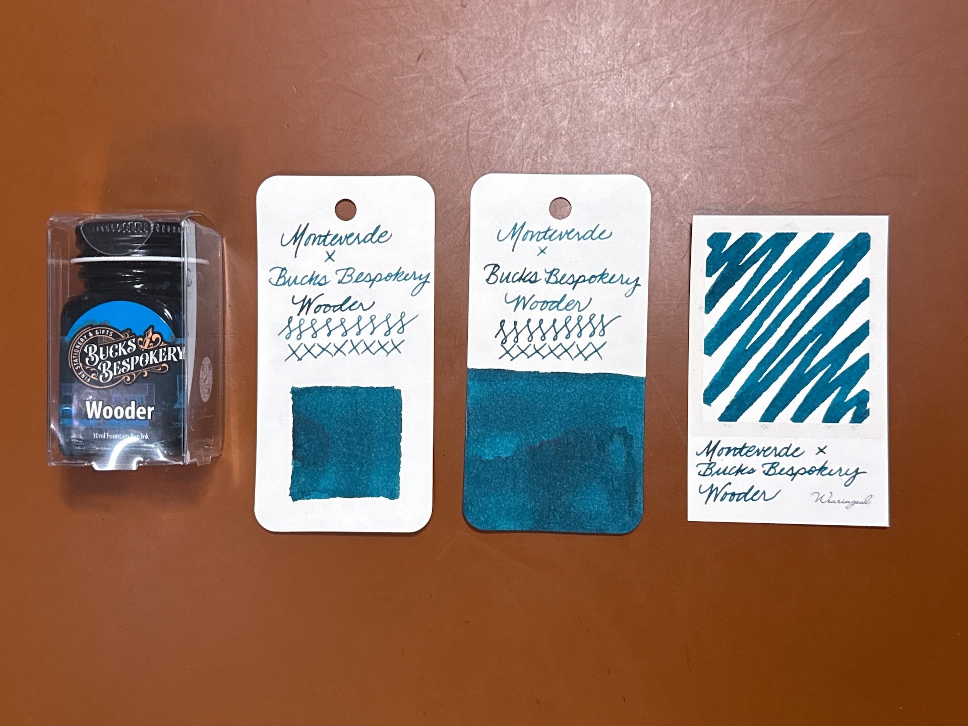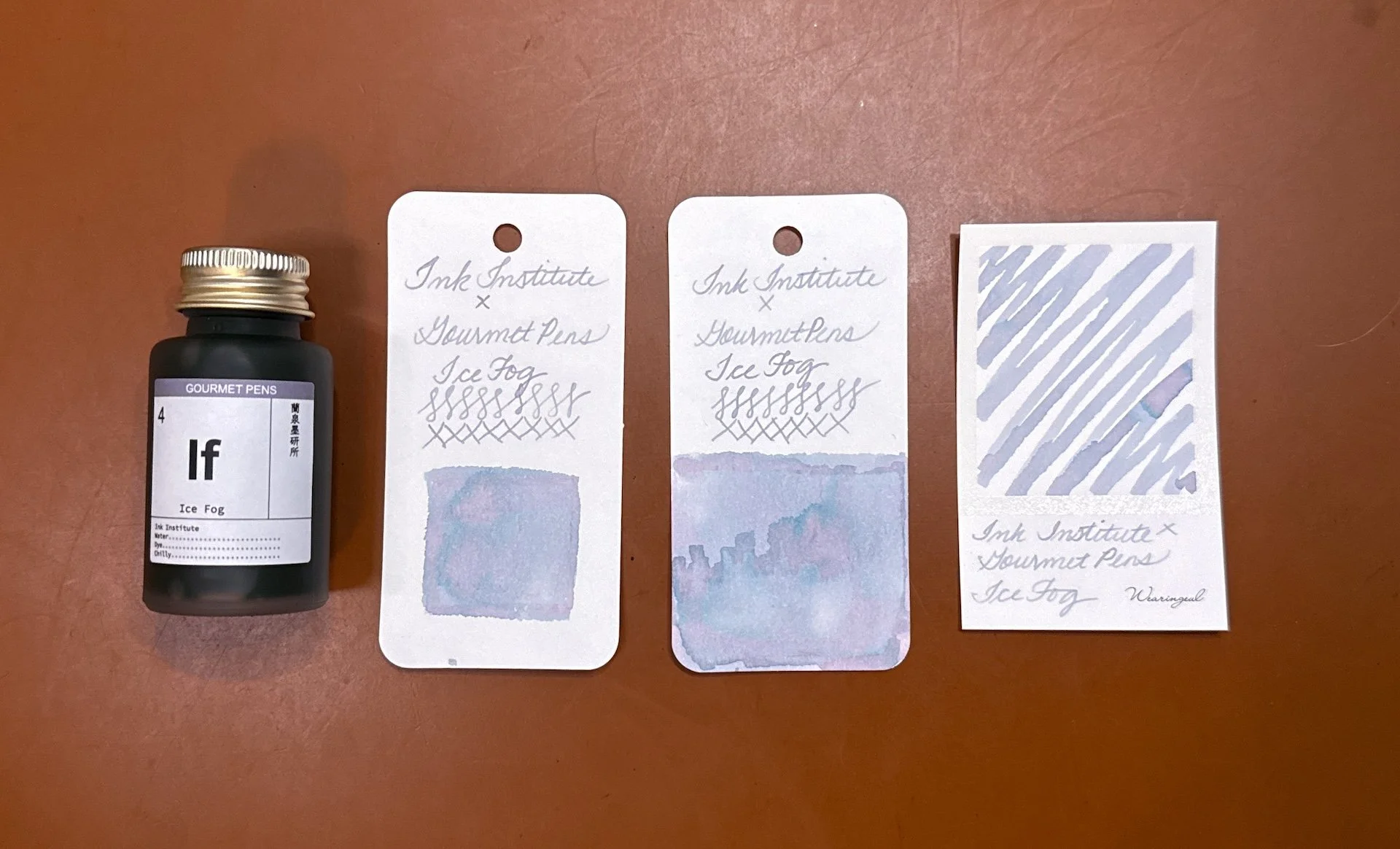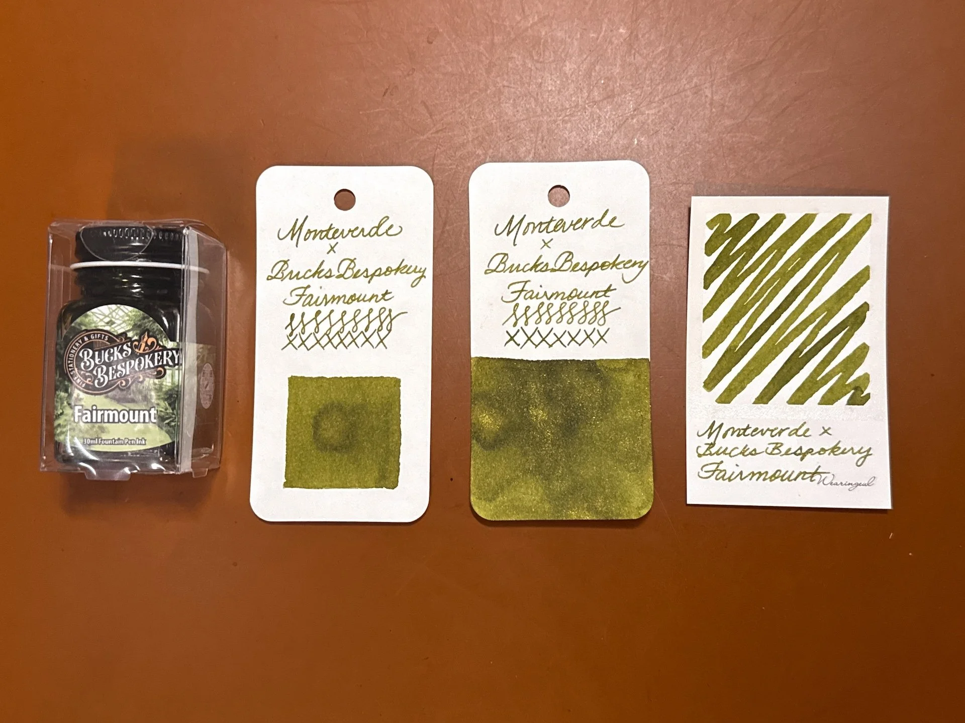 The ink comes in a generous 50ml dark glass bottle that's perfectly shaped for pen filling. It's wide enough to be stable, but deep enough to fill your pen easily. The label on the bottle is made of fountain pen friendly paper and includes a swab of the color, so you get an honest idea of what the color looks like.