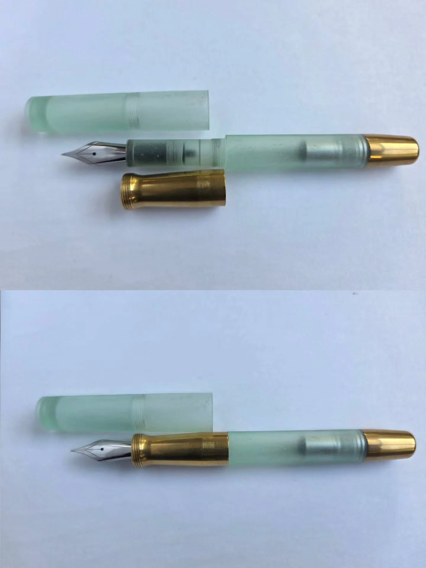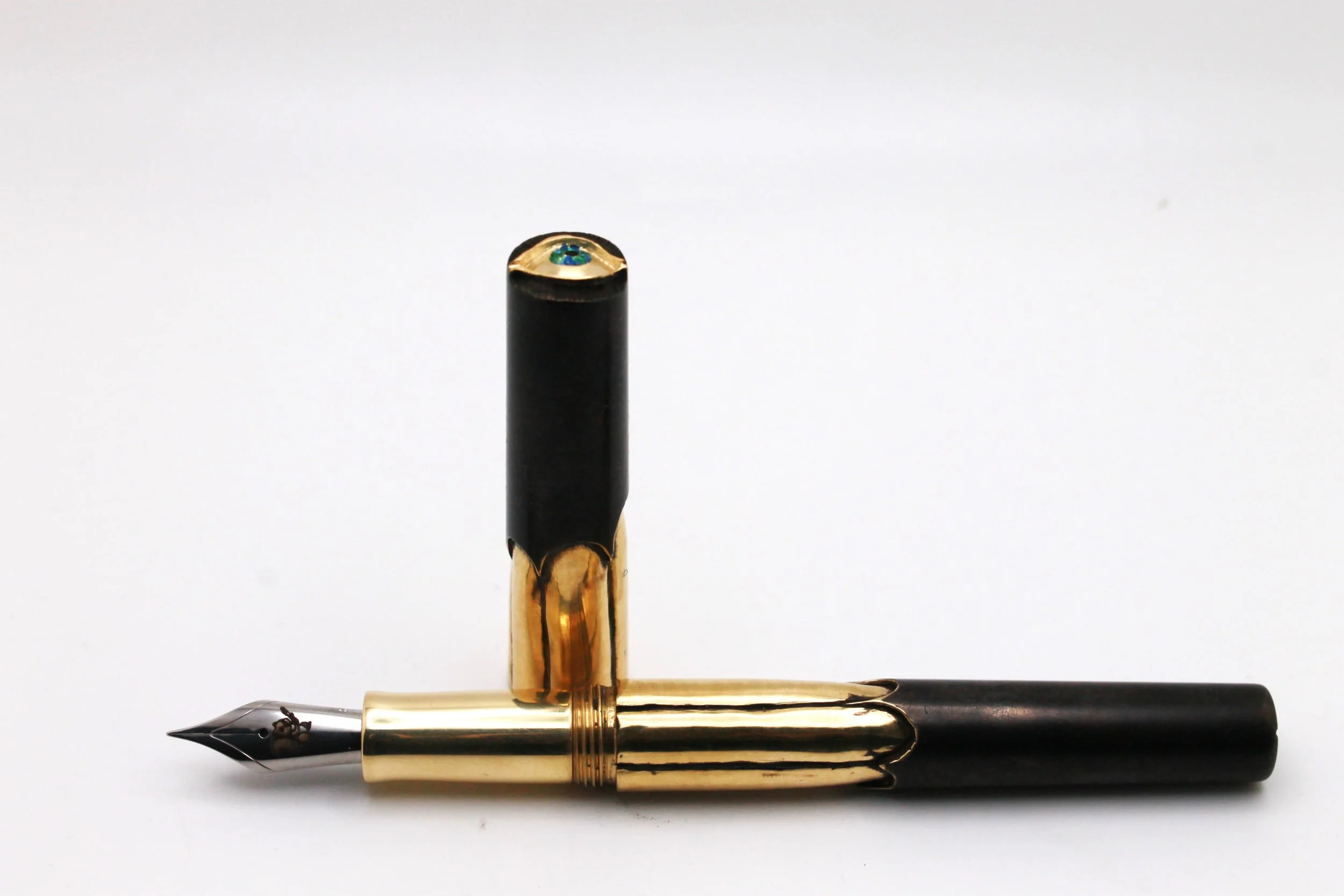 It was Mike that put him in touch with the metal artist Virg, of The Abyss Looks Back @theabysslooksback001 (formerly called Toothurty). At the time, Virg was focused on motifs involving teeth. “If you know D&D, there is this thing called a Mimic – it copies the appearance of a different object. I sent him a Mistress model in solid brass, and he created a masterpiece! This is the Mimic of fountain pens.”