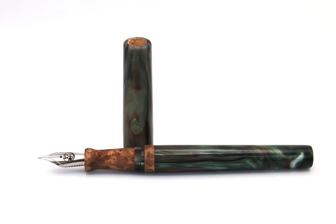 The first bespoke fountain pen Merrill saw was being made by Jason Miller of Jason Neil Penworks, on his Instagram live. “I decided to try that. That’s when it turned into a business instead of something to keep me busy. I sold my motorcycle to pay for tools. I had also found that I would rather be home with my girls than out riding, and I always enjoyed working on it more than riding it anyway.”