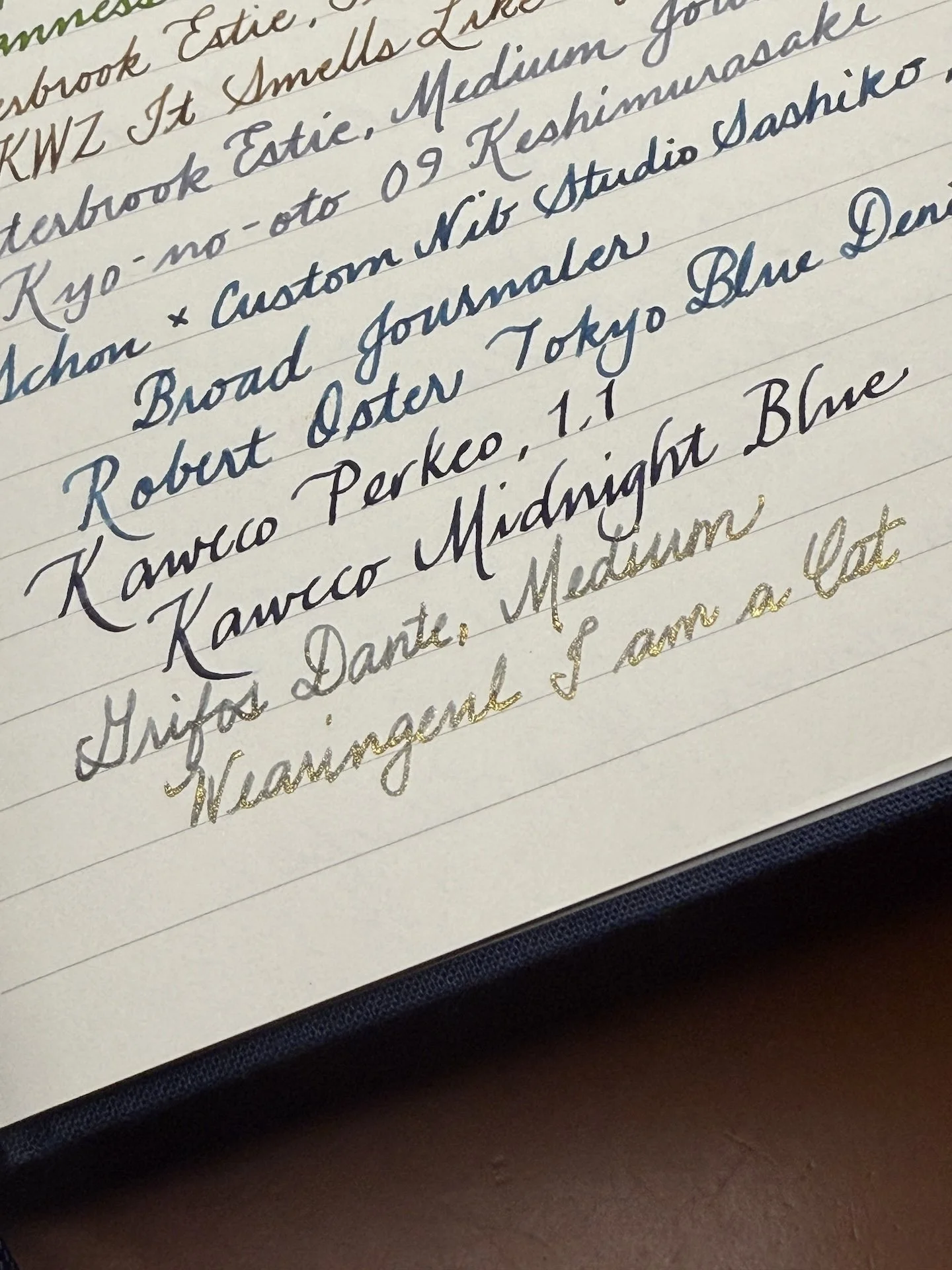 Writing samples with Broad nibs. I also included flex and ground nibs, as well as a stub.
