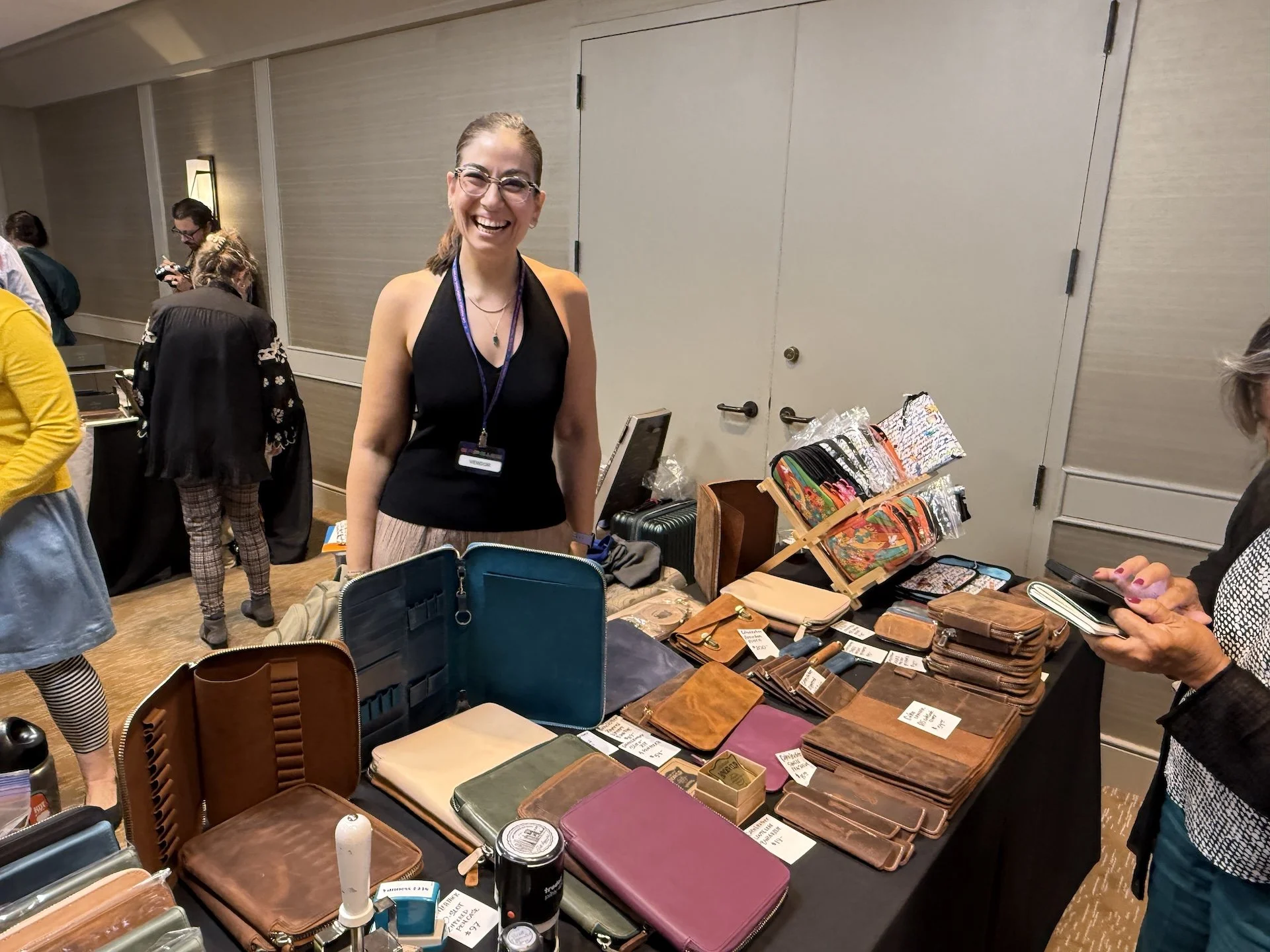 Meltem, who does the nib grinds for Galen Leather, brought lots of their products to the Vanness Pens table!