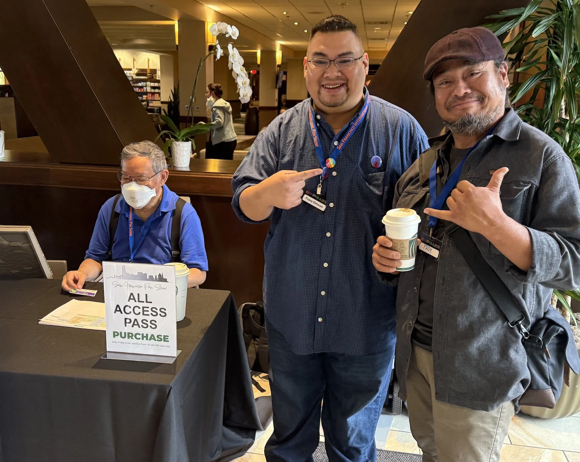 Gary, Franz, & Froy are a few of the volunteers from the SF Pen Posse who were helping at the various ticketing tables.
