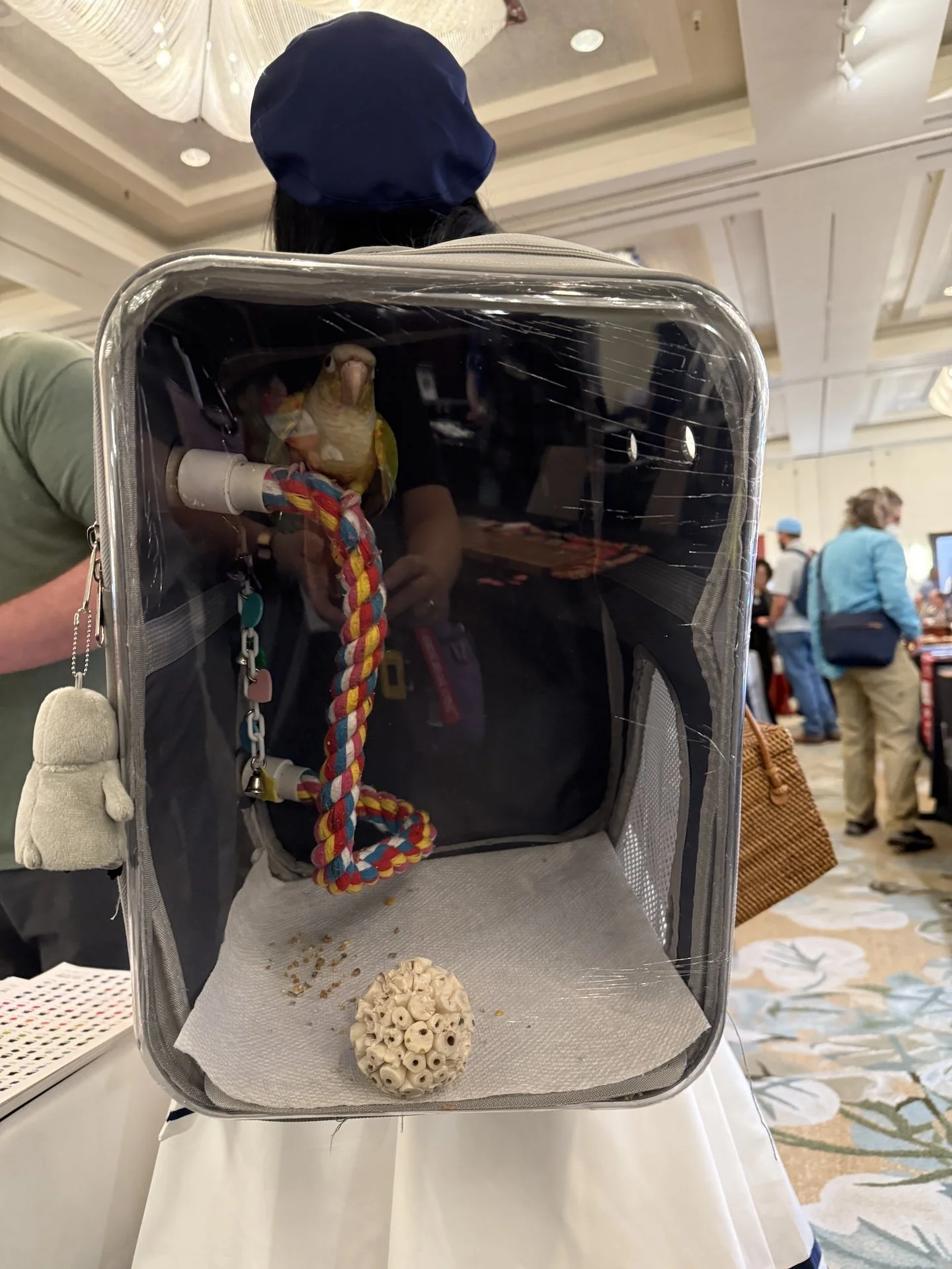 This kind birb owner brought their birb (and backpack) on Sunday when it was less crowded.
