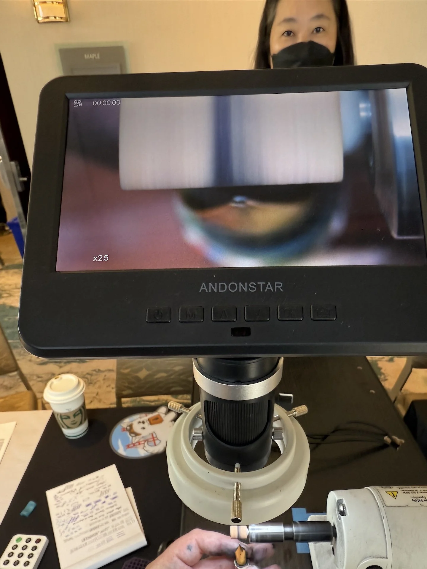 Damien can see the nib and grinding wheel (down below) on his screen, and can also see me staring at him, lol.