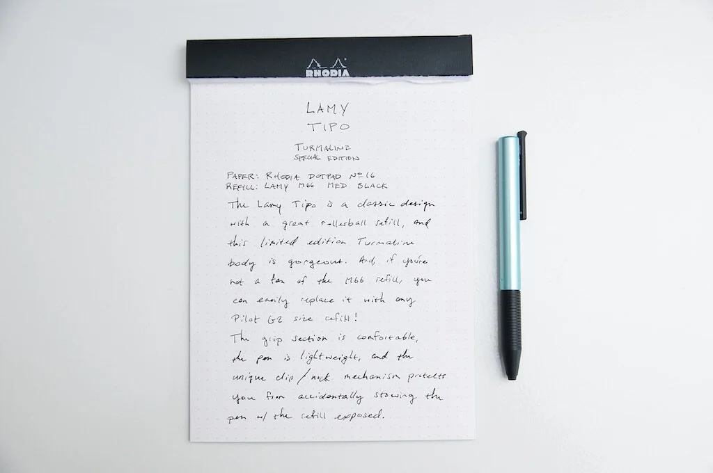 The Lamy Tipo is a fantastic rollerball pen that also makes a great gift. It's affordable enough to buy as an impulse, but nice enough to carry with you or use at the office for taking notes and making signatures. The limited edition Turmaline version is a gorgeous pen, so if it's something you want to pick up, make sure you do soon before they're gone!