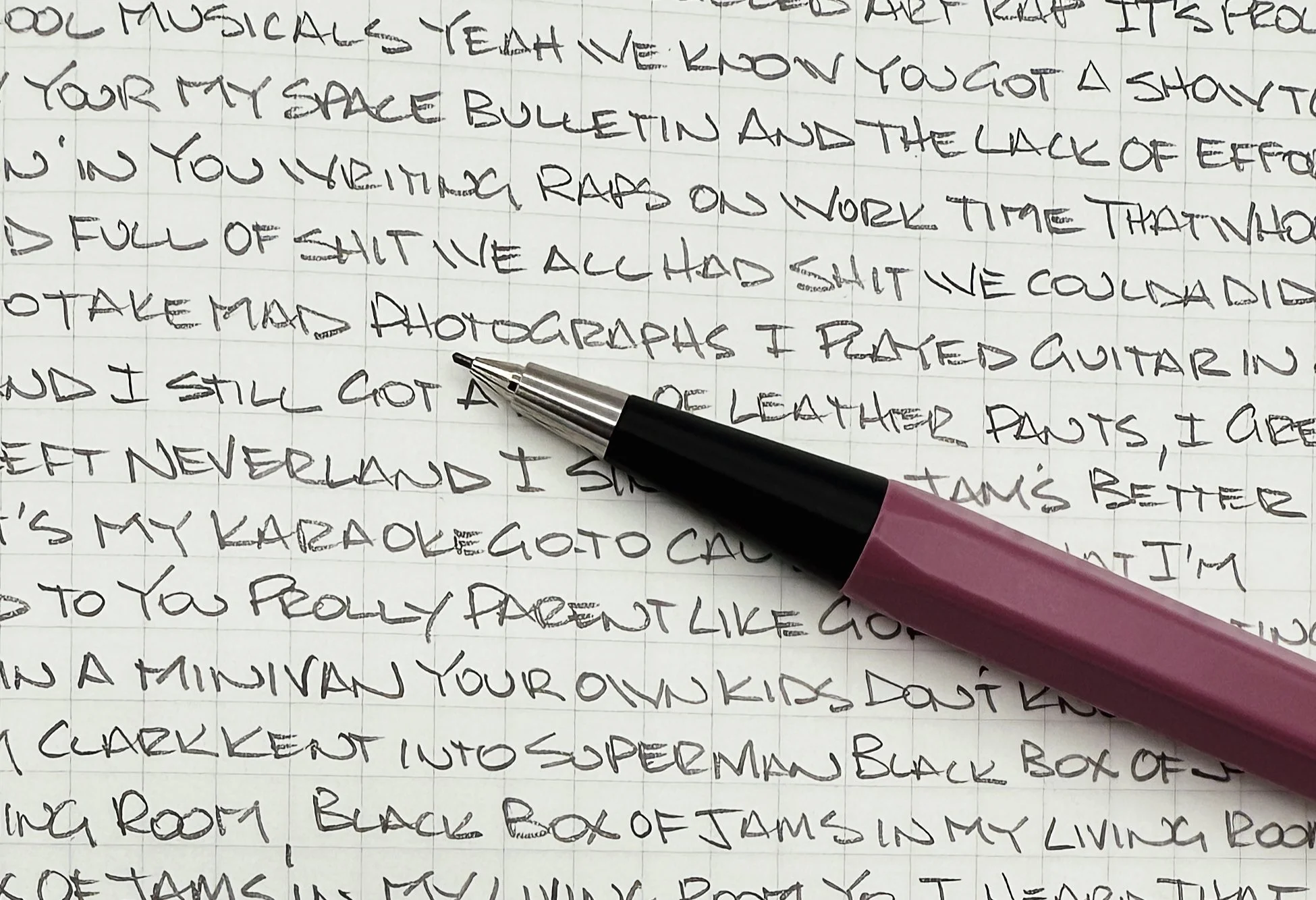 For starters, there is no eraser. That’s not a deal-breaker for me, but is mandatory for others. What may be closer to a deal-breaker, is the aforementioned twist mechanism. To extend the graphite, you give the mechanism on the end of the pencil a quarter-twist, counter-clockwise, for each stage you would like to extend. For me, that’s two clicks (it’s a ratchet-style mechanism that snaps back after each twist,) to get my preferred writing length.