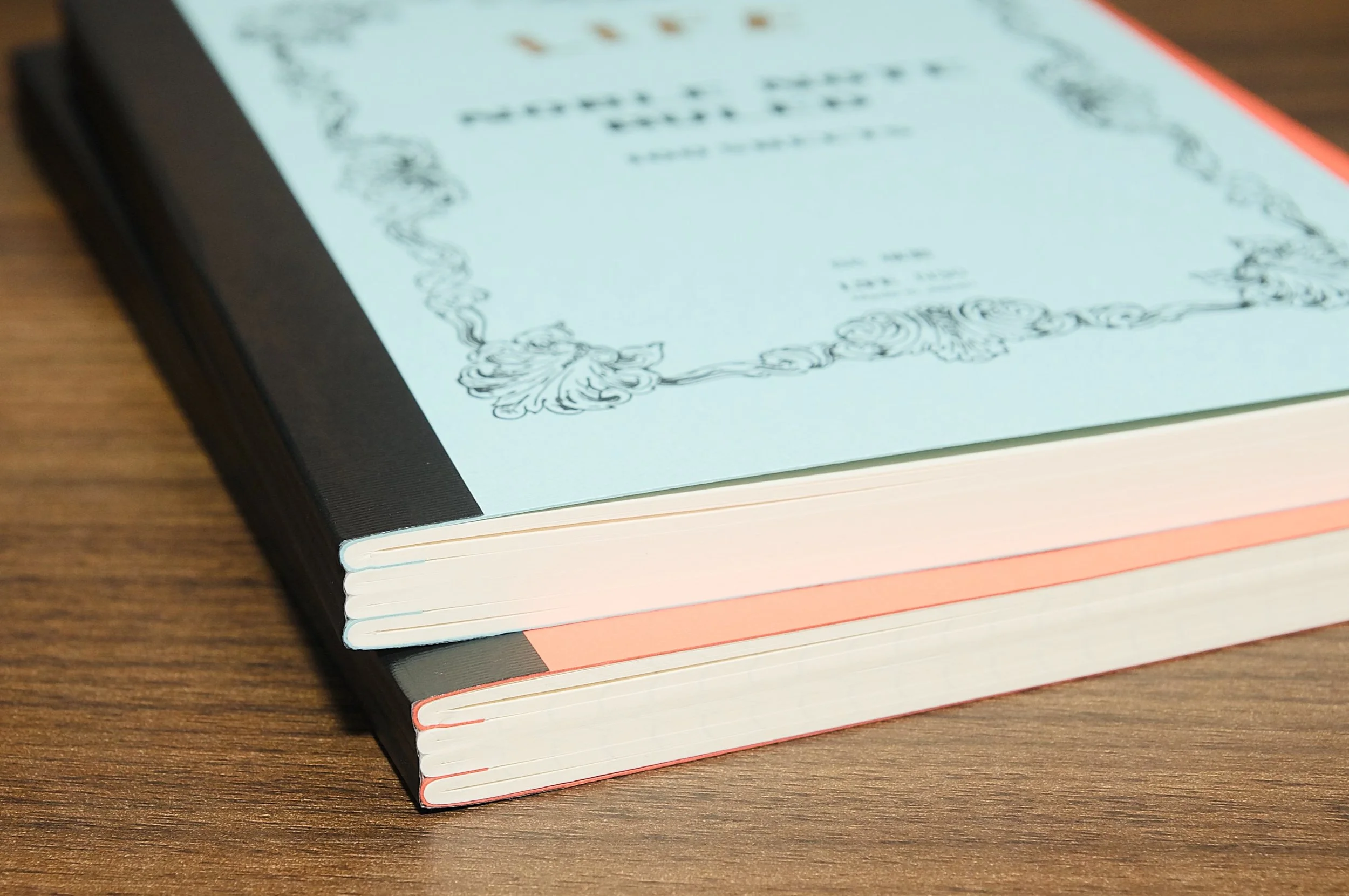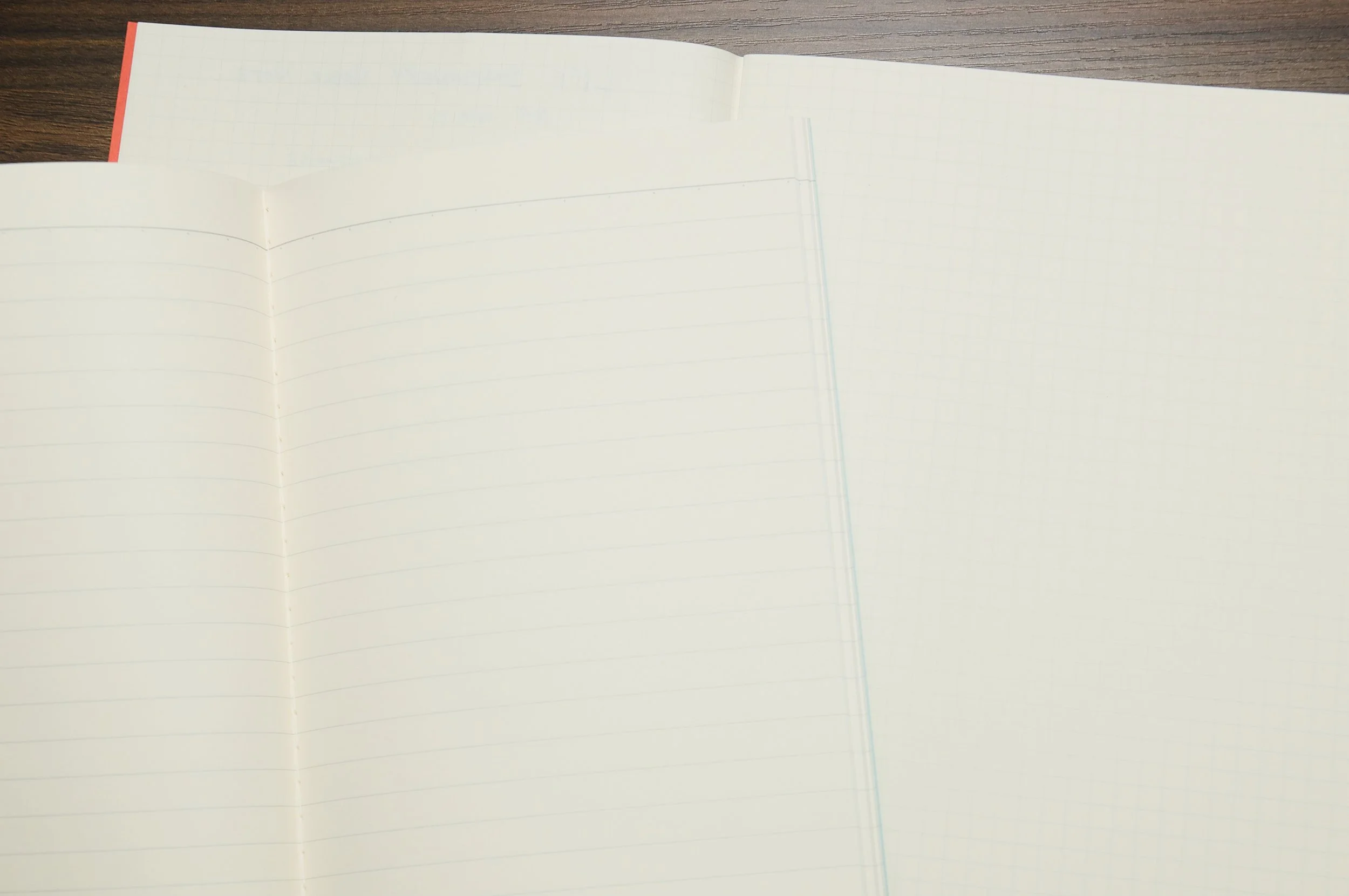 Both notebooks have 100 sheets (200 pages) of ivory 84.9 gsm acid-free paper. The binding uses the perfect-bound technique, which involves several sections that are bound with thread and then connected to each other with an adhesive spine. It makes for a clean look where you can see the four sections from the side, and then the characteristic black spine tape. This also makes it easier for the notebook to lay open on its own.