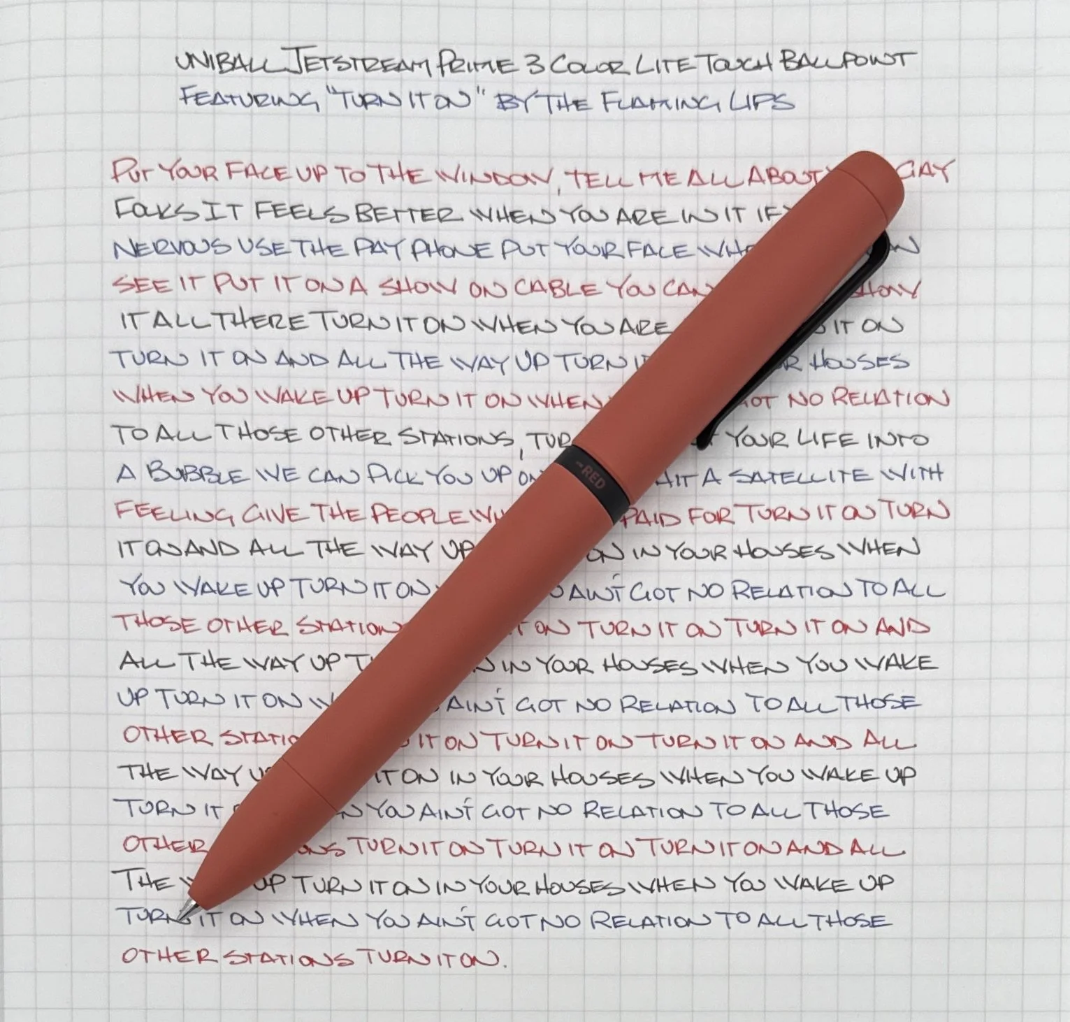 The Jetstream Lite Touch had been launched to great fanfare in 2024, and my experience with it has been great. I reviewed the single pen and the 4+1 multi pen at the time, and have mostly stuck with the single version since. My uniball multi pen time has been mostly spent with the 4+1 Karimoku edition (also seen in the linked review, and in this one,) but the Prime has a lot going for it that has me intrigued.