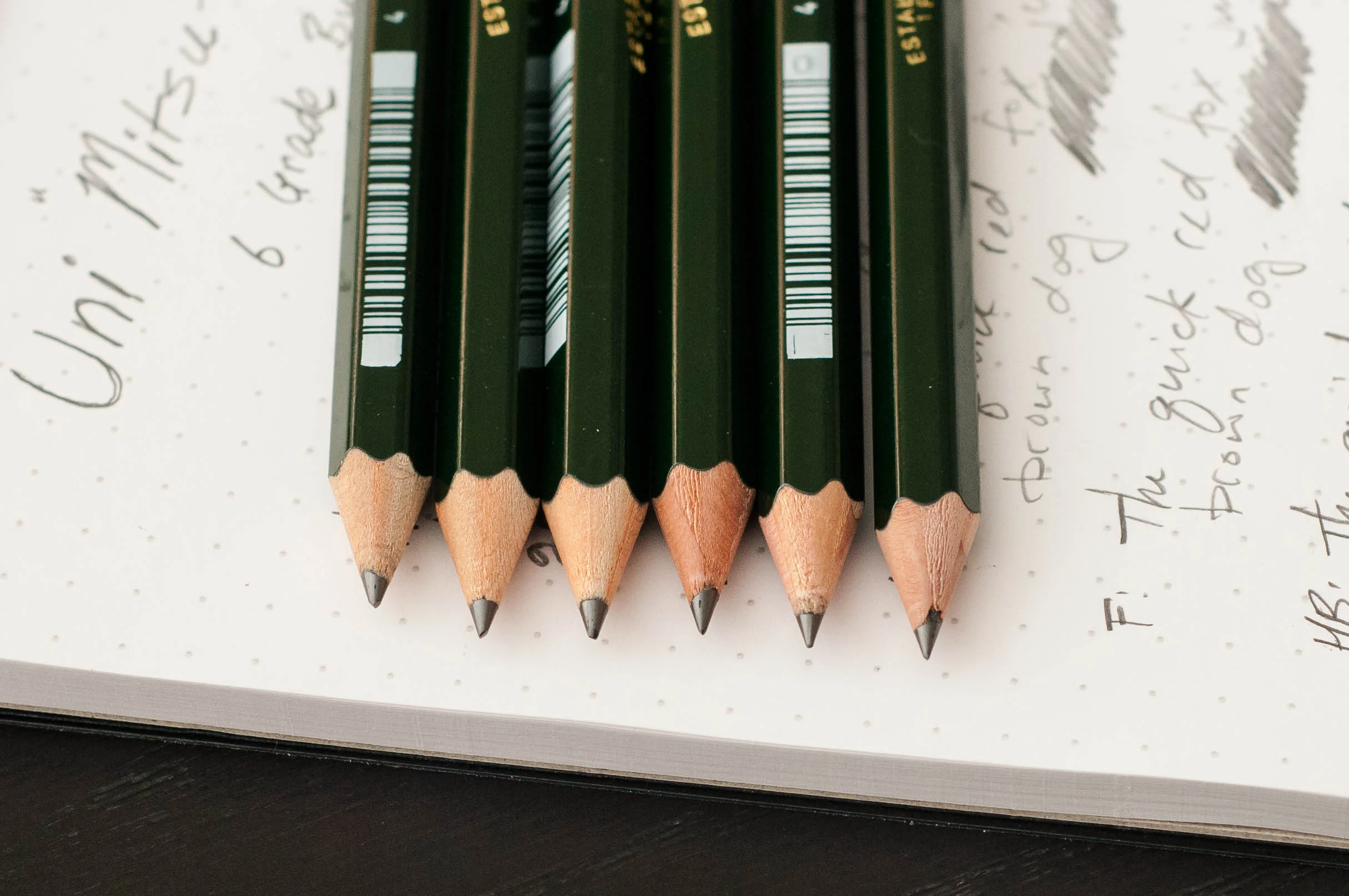 Today, it's a little easier to find all kinds of pencils at different lead grades. But, if you're new to the concept of hard and soft lead grades, you probably don't know where to begin. Lead grades are a personal preference based on what you like for general writing, sketching, etc. Some grades work well for certain tasks, while other grades work better for others. One of the best ways to try out the different grades is to purchase a bundle of the same pencil in several grades. JetPens offers a bundle with the Uni Mitsubishi 9800 pencils. While the 9800 isn't my favorite pencil to use, it's still a very capable and high-quality pencil. The important thing is that you buy a bundle within the same pencil line. Even though there wouldn't be a huge difference between the lines or brands, it's best to stick to one line for testing.