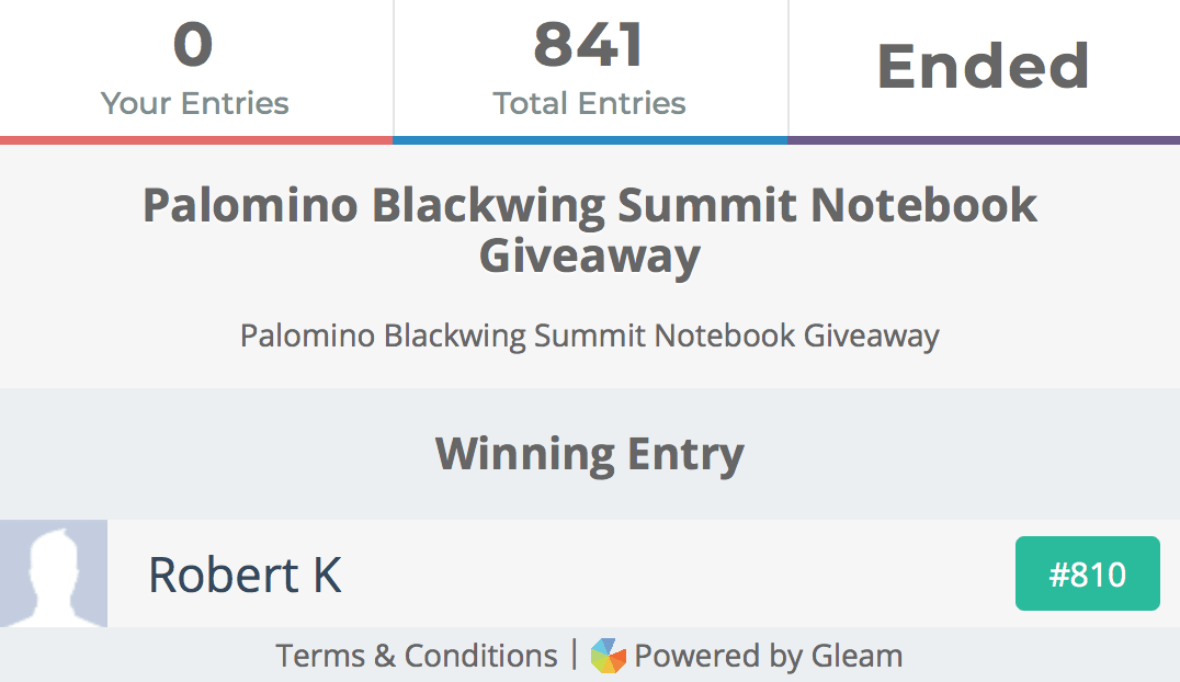 The Palomino Blackwing Summit Notebook is an excellent entry into the larger, hardbound notebook arena. I've been pleased with mine so far, and hopefully the winner of this one is too.