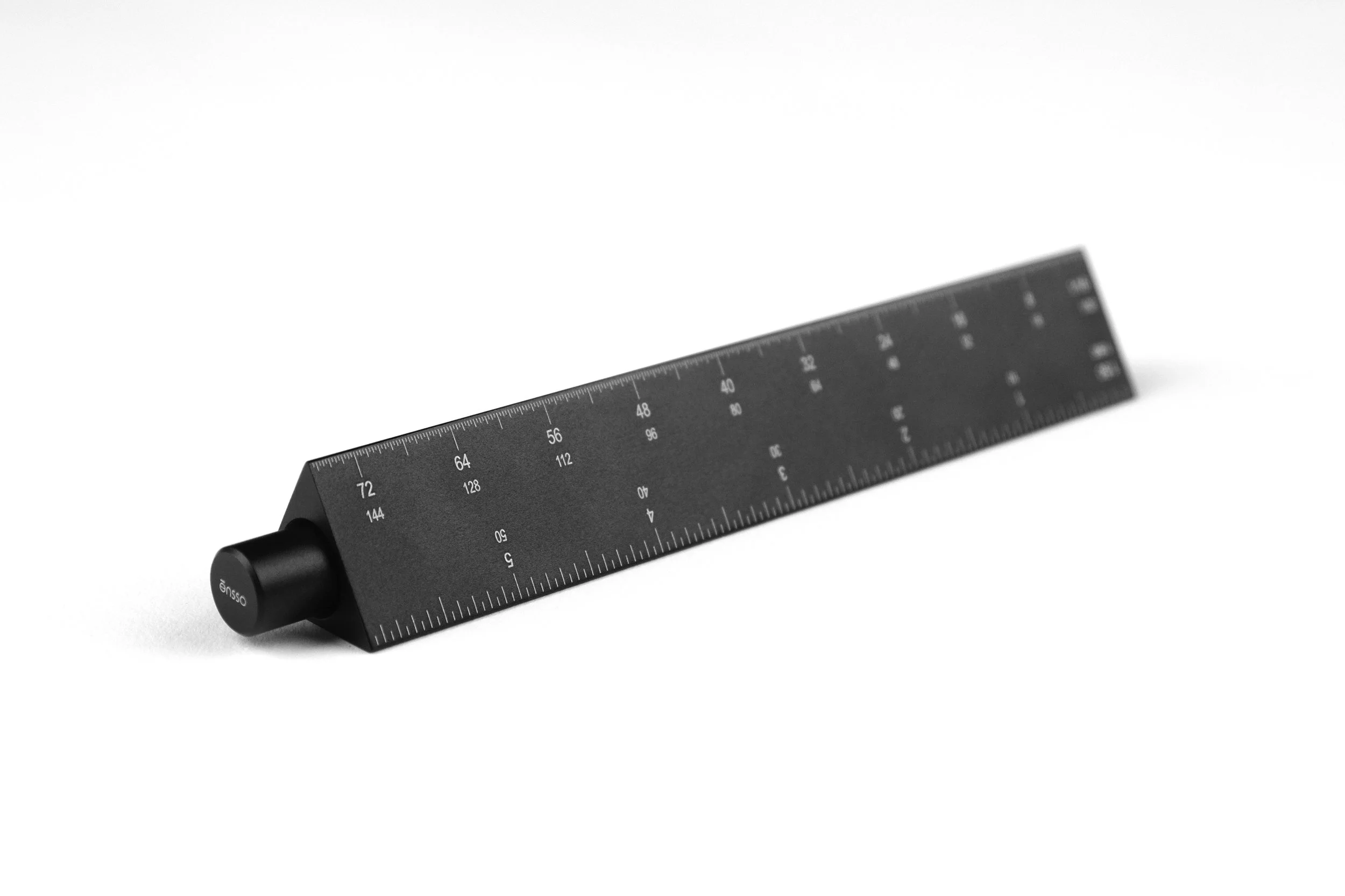 Held in place by an interior gasket when stored, the fountain pen features the same black matte anodized aluminum finish as the ruler. The black Bock nib ties it all together, and every pen also includes a standard international converter to fill with your ink of choice.