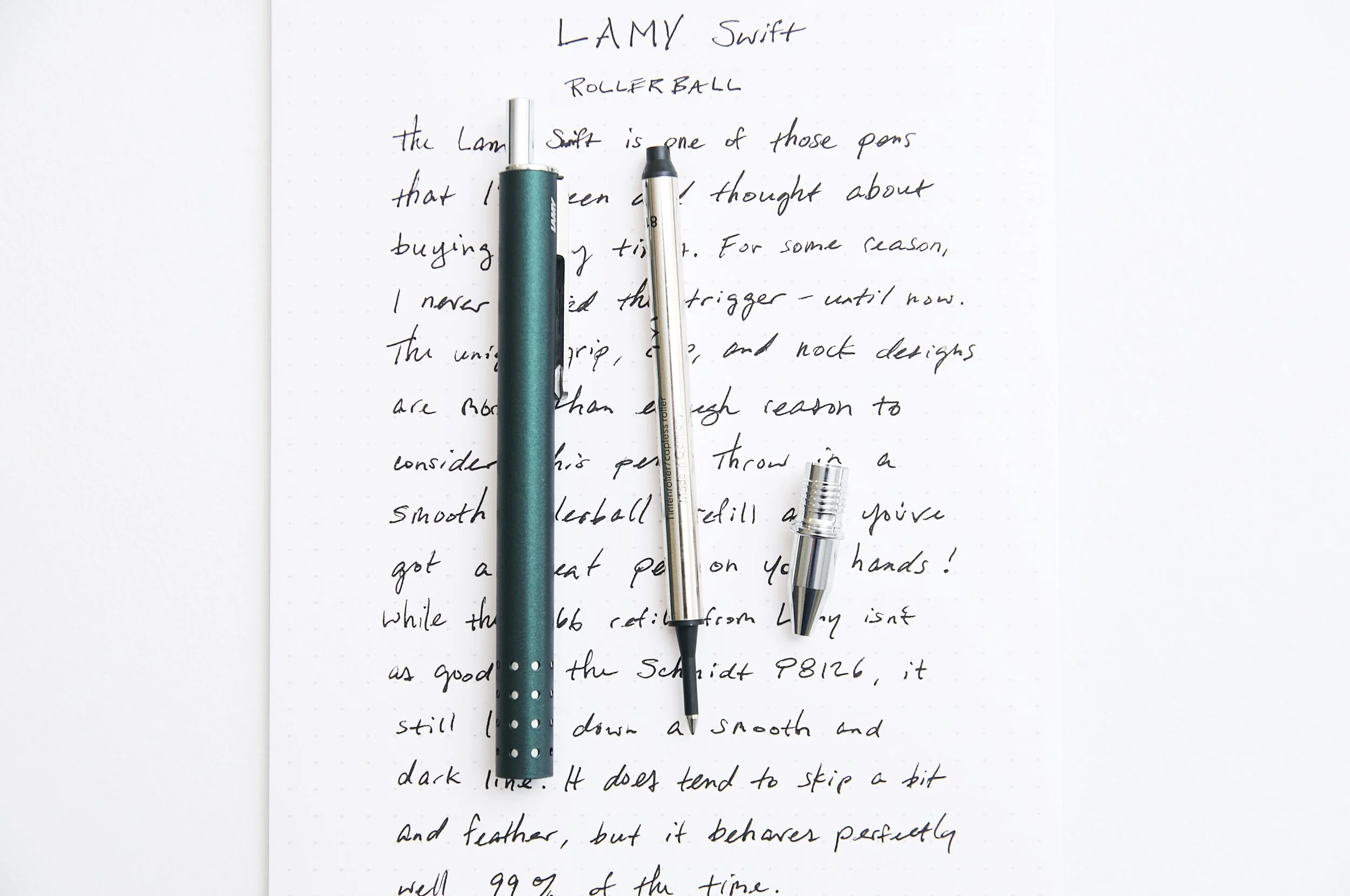 The Lamy Swift rollerball pen is one that I've seen and thought about picking up so many times in the past. For some reason, I just never went through with the purchase — now that I have one, I can really appreciate the thoughtful and unique design of this pen.