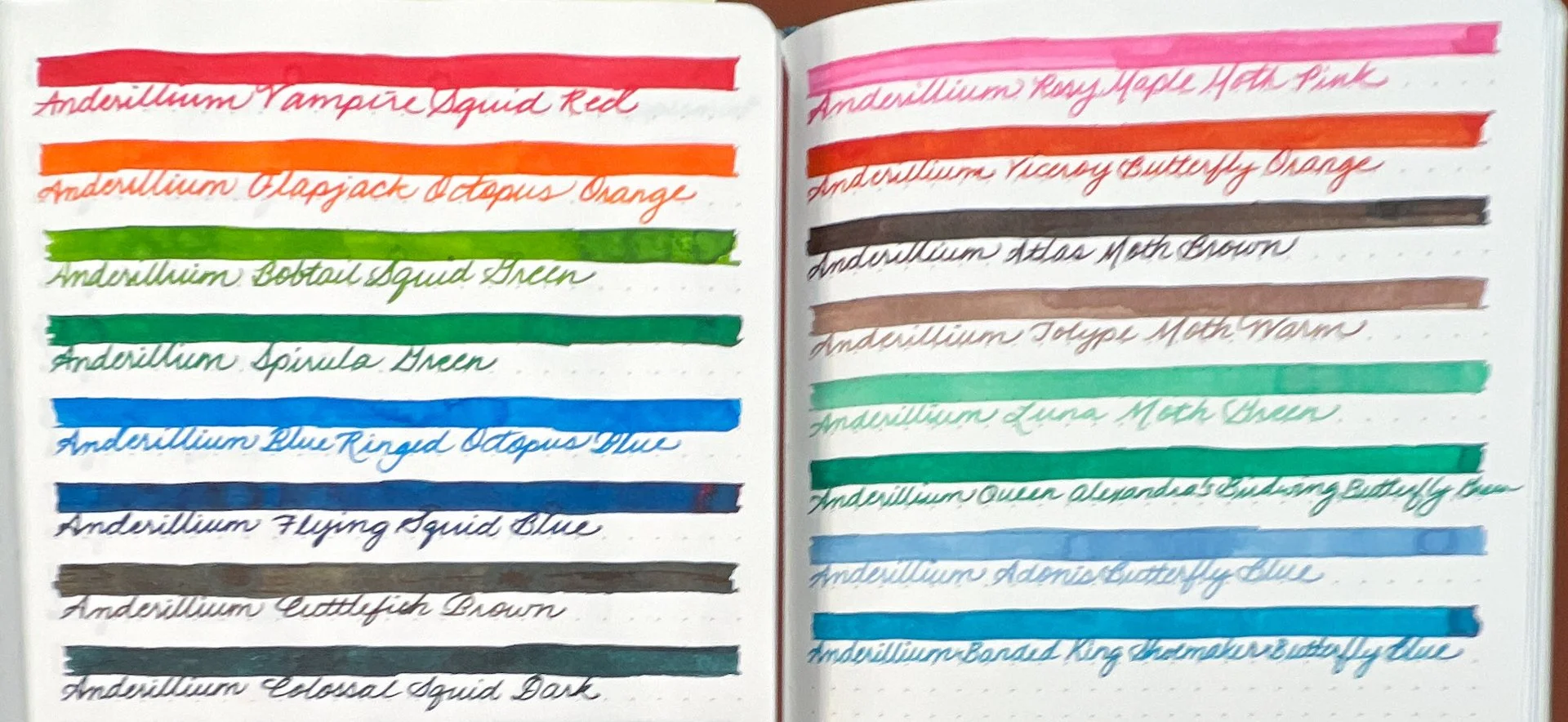 Last year I went a little nuts and reviewed all of the Anderillium Cephalopod Inks and thought I’d do the same with the latest Lepidopteran series too! This third series of inks was released at the DC Pen Show back in August (the two others are Cephalopod and Avian). Lepidoptera is an order of insects that includes both moths and butterflies.