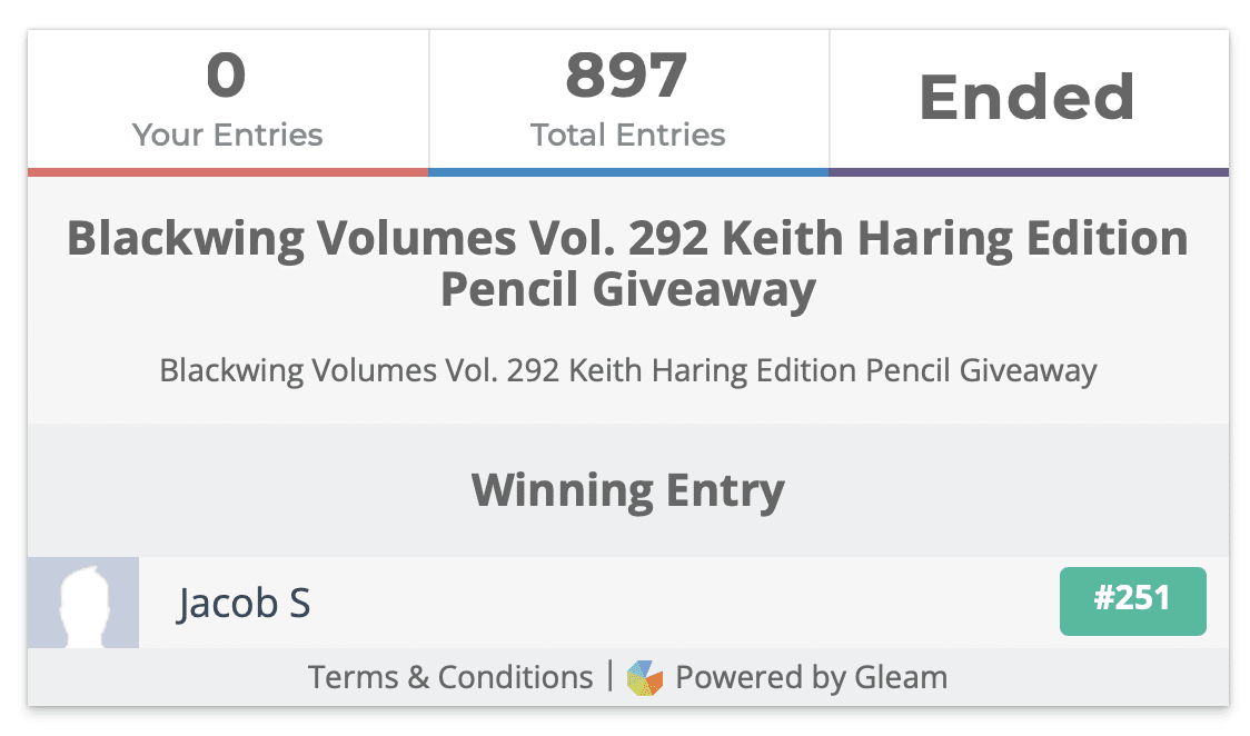 One of my favorite releases of the past few years, the Keith Haring Edition Blackwing Pencils are a total knockout. When I bought mine, I made sure to grab another for giveaway, because they sold quickly. I have one dozen of these pencils to give away, and the winner is: