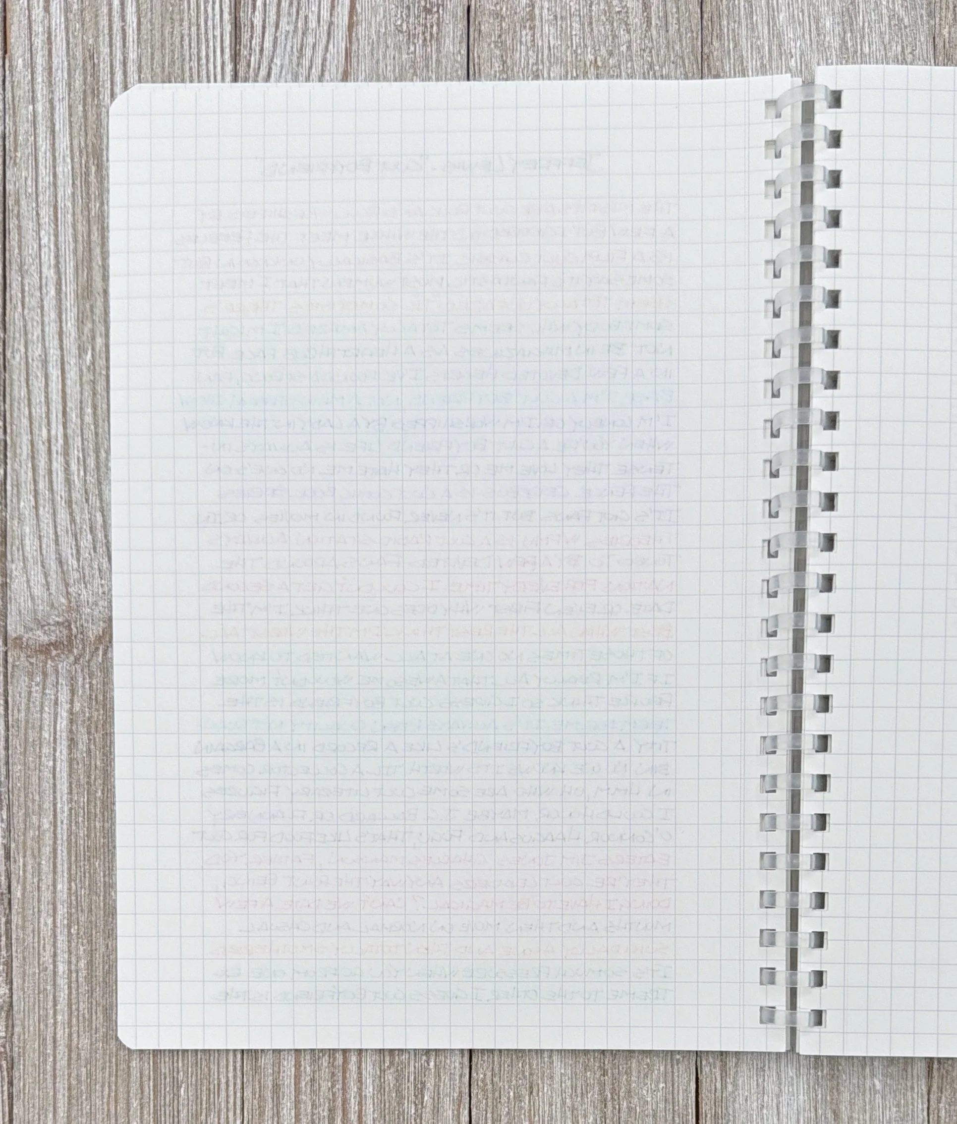 I’m a sucker for this look, but I wasn’t into the pens, and I don’t need any of the accessories. So, where did that leave me? Paper. Specifically, the Soft Ring A5 Graph notebook.