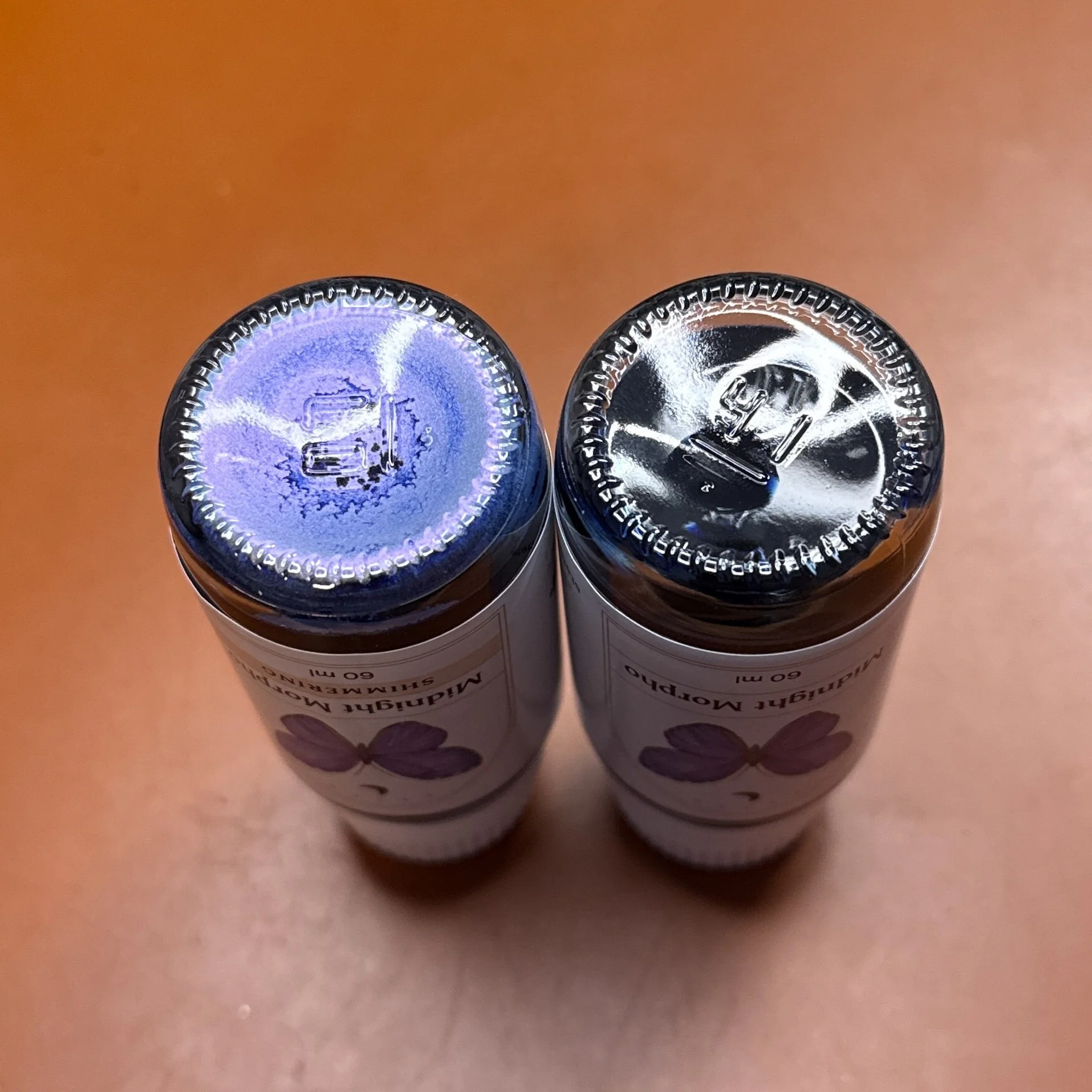 Midnight Morpho Shimmering has the same base ink as its non-shimmering sibling, but this one has a purple pearlescent shimmer! The purple shimmer almost disappears against the purple ink.