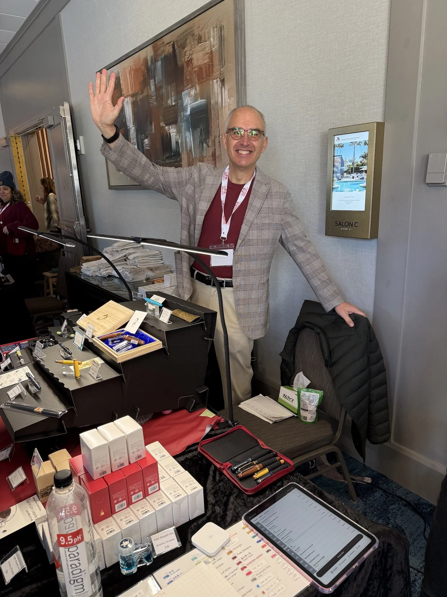 *Joe Crace, The Gentleman Stationer, at his tables, which he shared with Lisa Vanness of Vanness Pens (not pictured because she was teaching a class). *