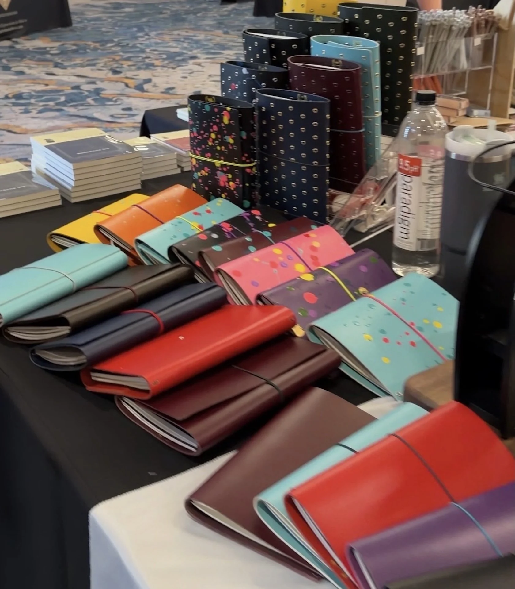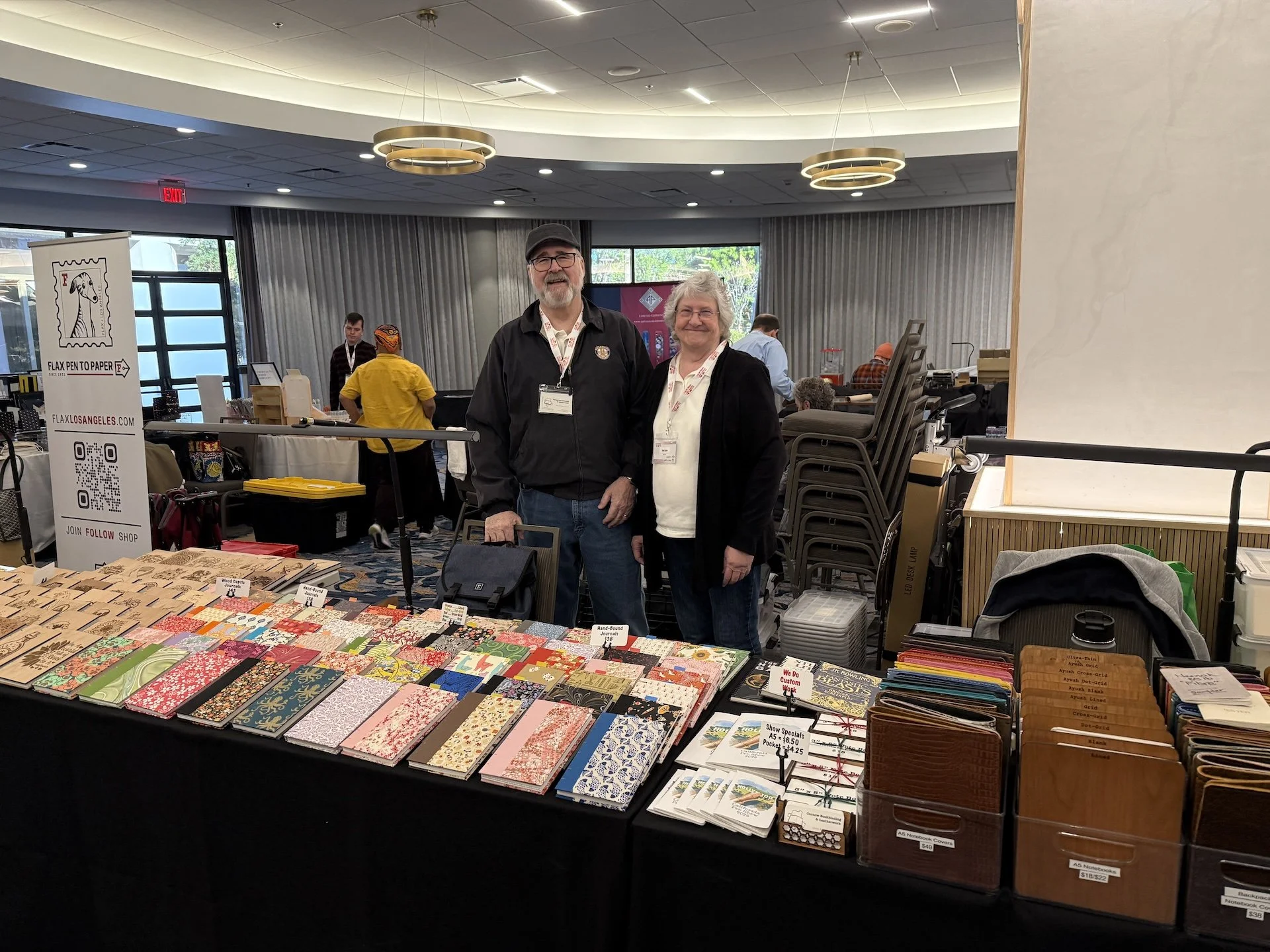 Steve and Diane Curnow of Curnow Bookbinding and Leather with their vast array of handbound notebooks. I recently had a notebook made from a recycled Winnie-the-Pooh book and Canopus paper!