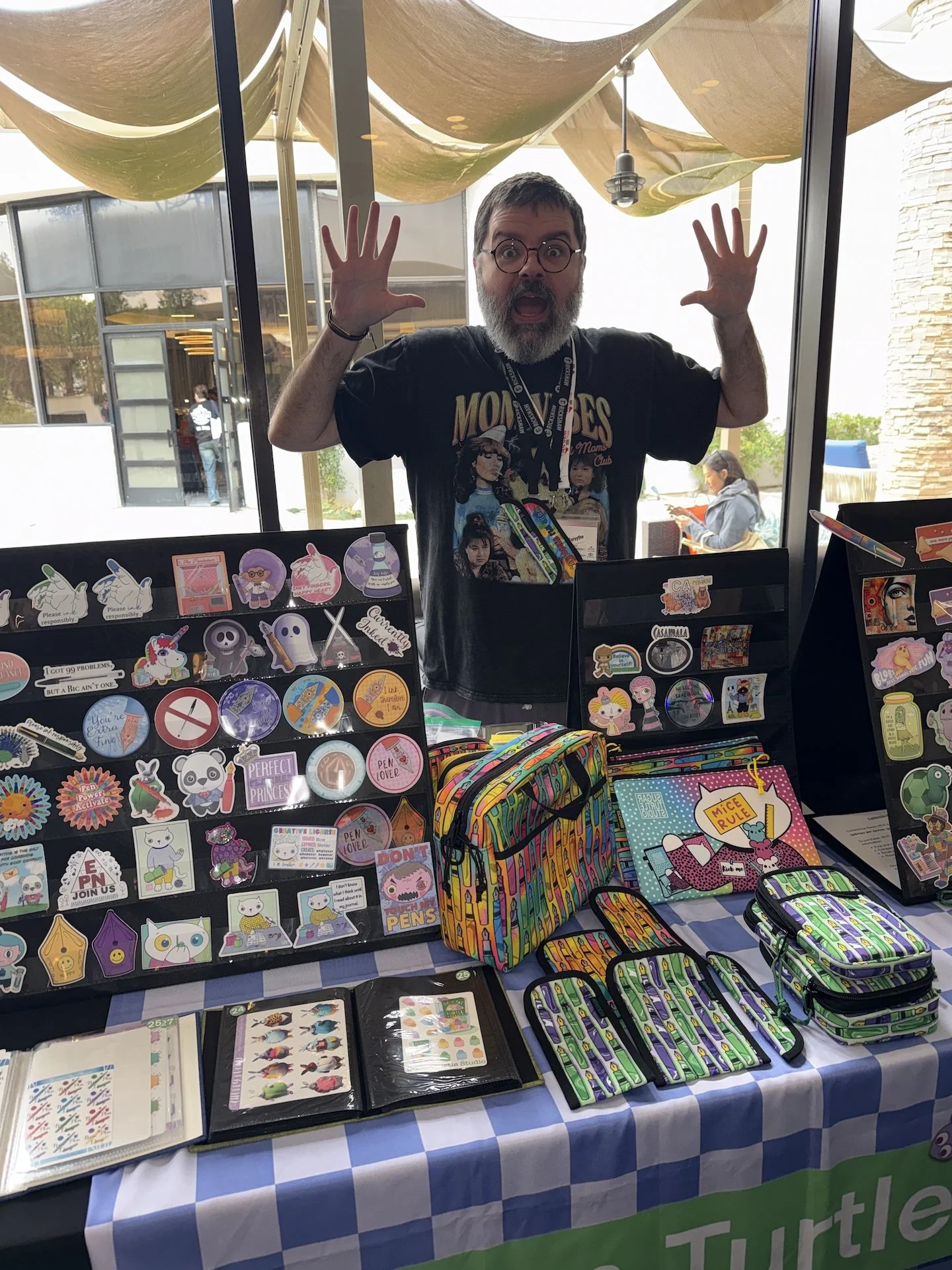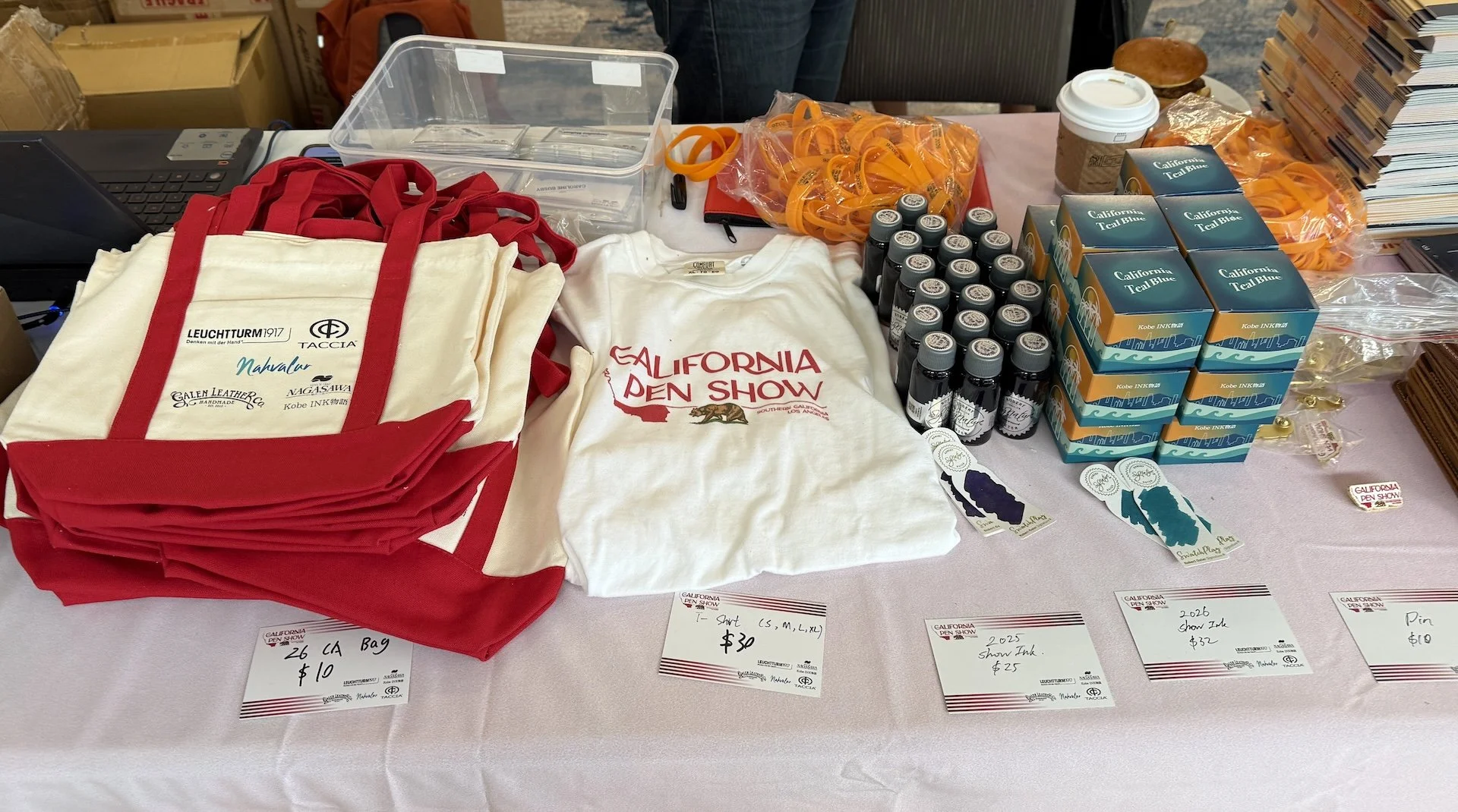 You can also purchase show merch like a canvas bag, t-shirt, past and current pen show inks, and pin.