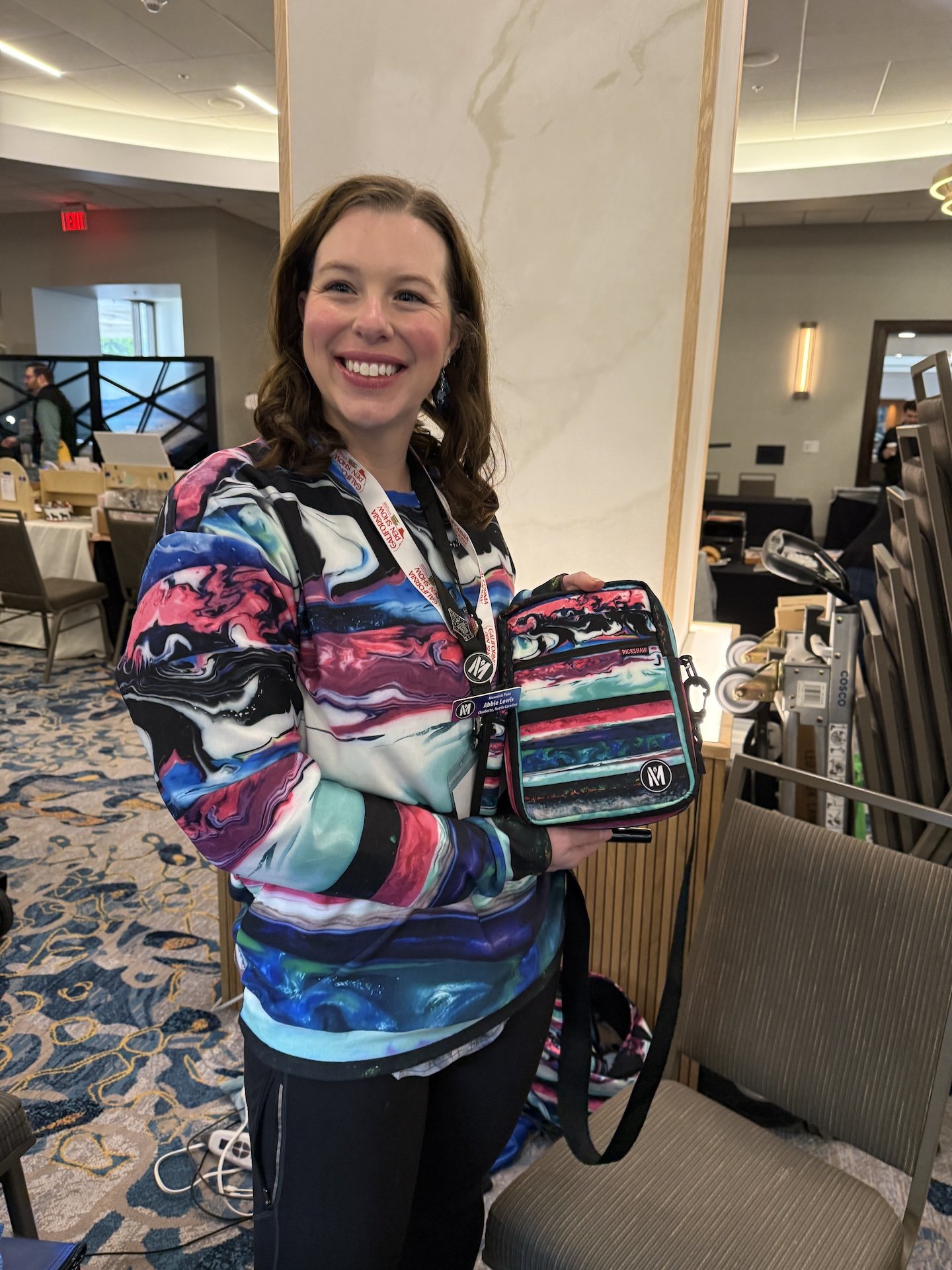 Abbie Lewis from Maverick Pens is sporting a Rickshaw bag that matches her shirt, or is it the other way around?