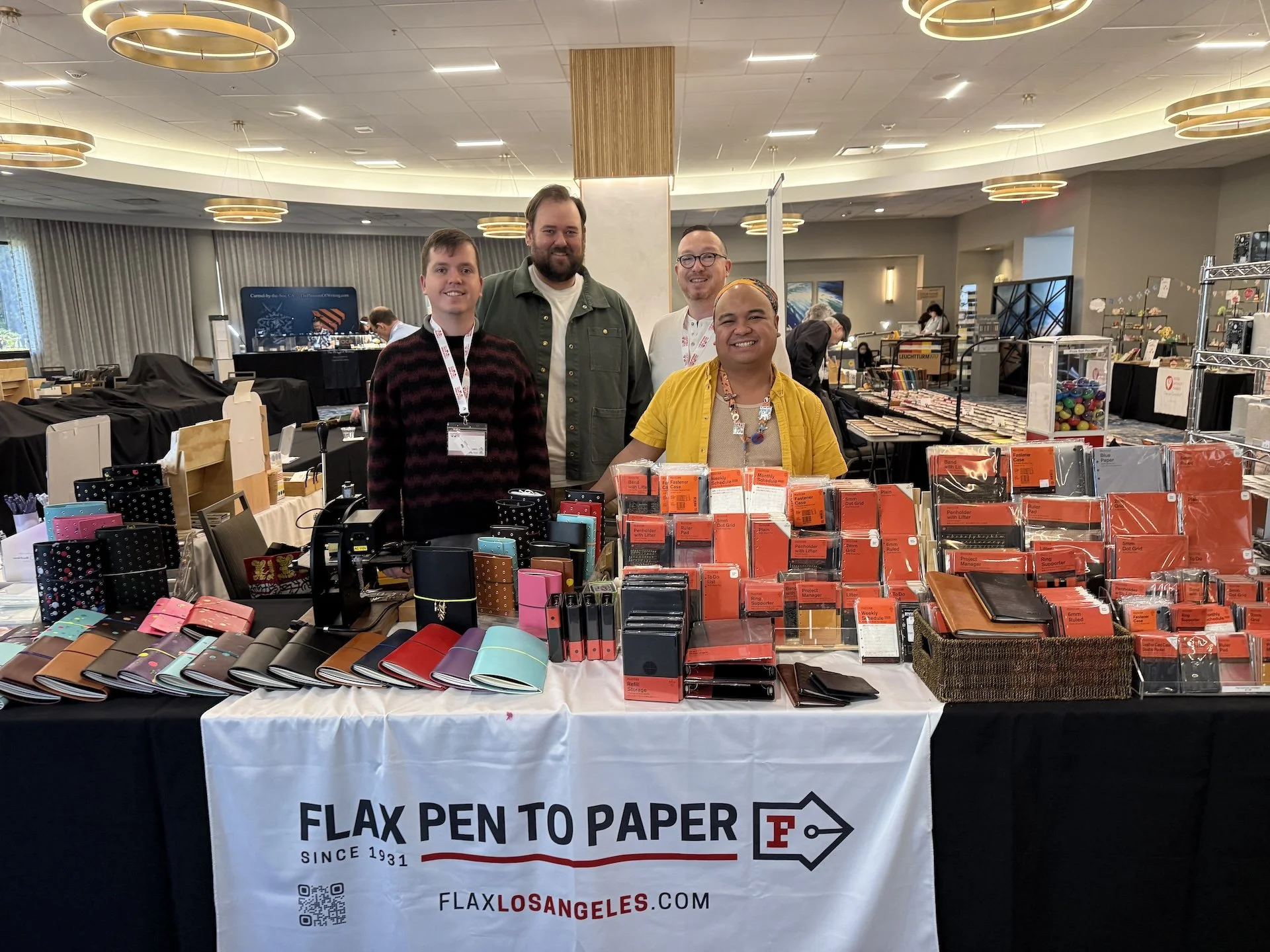 Ryan Finnegan of Saiko Stationery, Alex Jay of Imperfect Concepts, Jeremy Saumure of Flax Pen to Paper, and helper Leo Carney, were busy all weekend.
