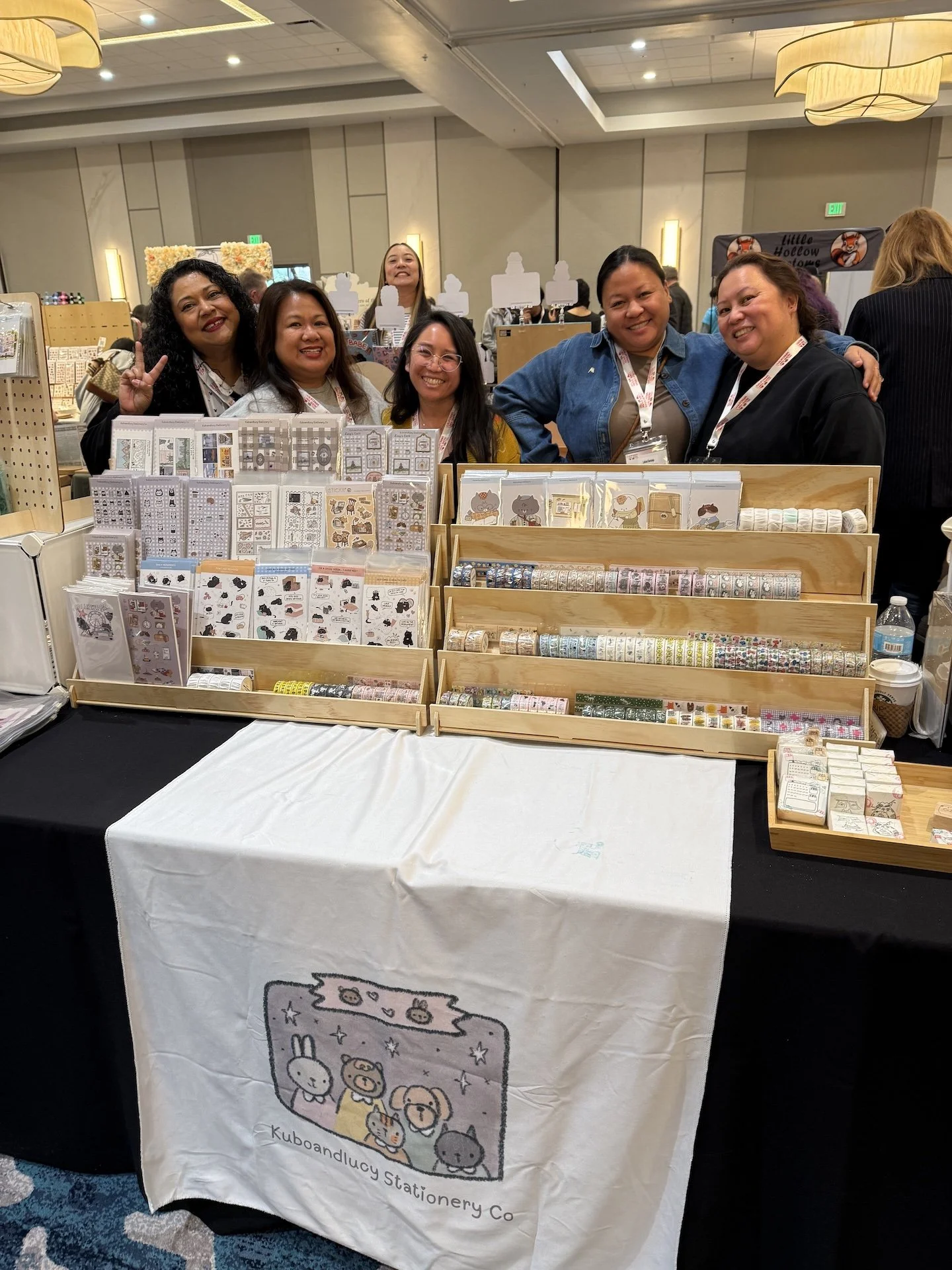 Believe it or not, all of these ladies don’t work for the same company! They were table neighbors and got together for this group shot! L to R: Claudia Ramos, Susie Cacacho, Julie Medina were with Shady Pine Paper Co and Leilani Bermejo and Yushing Foo were with Kuboandlucy Stationery Co.