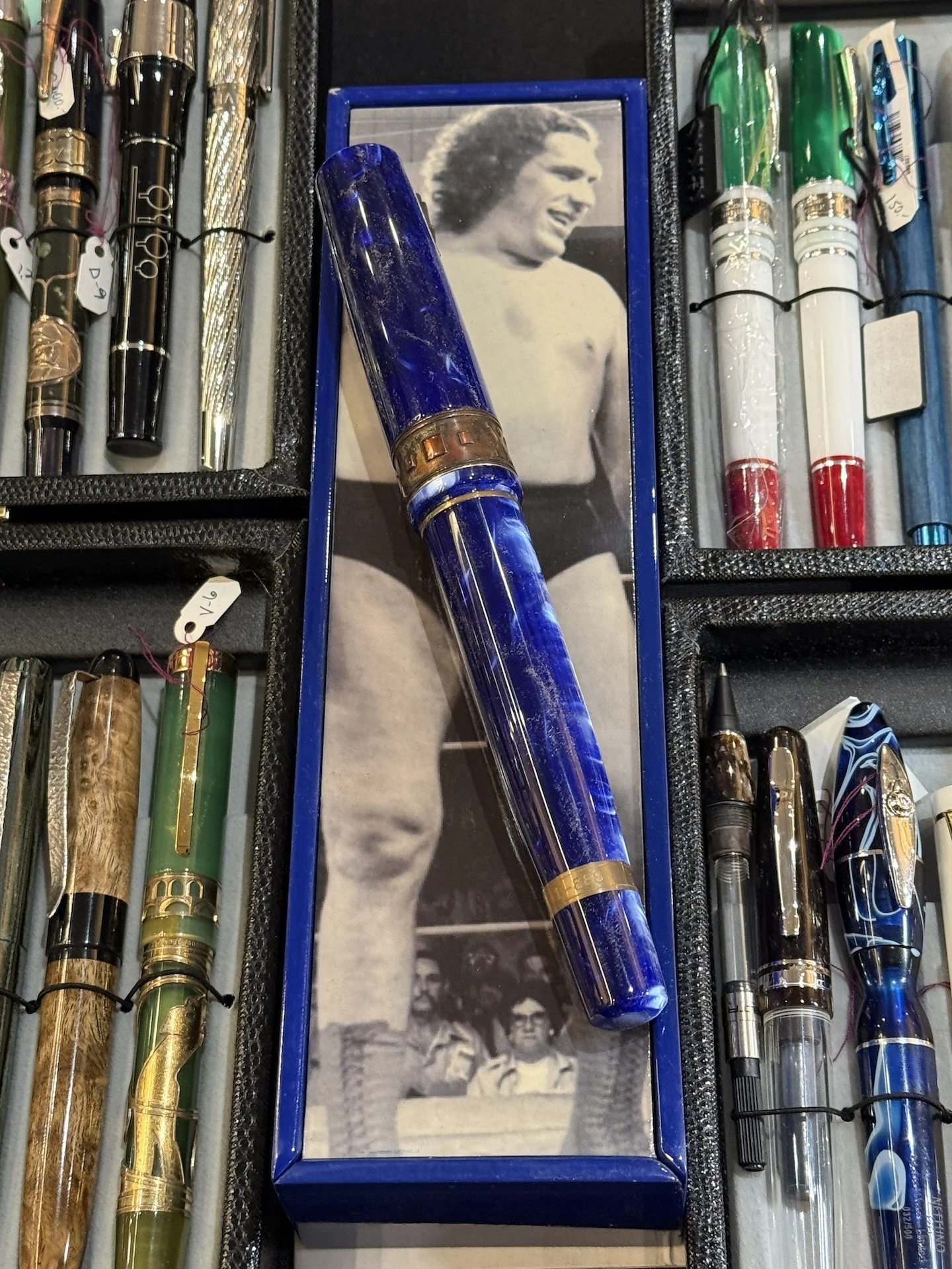 Where else but at a pen show, can you see an Andre the Giant pen? (RIP, I loved him so much in The Princess Bride.) The other pens look like pocket pens by comparison!