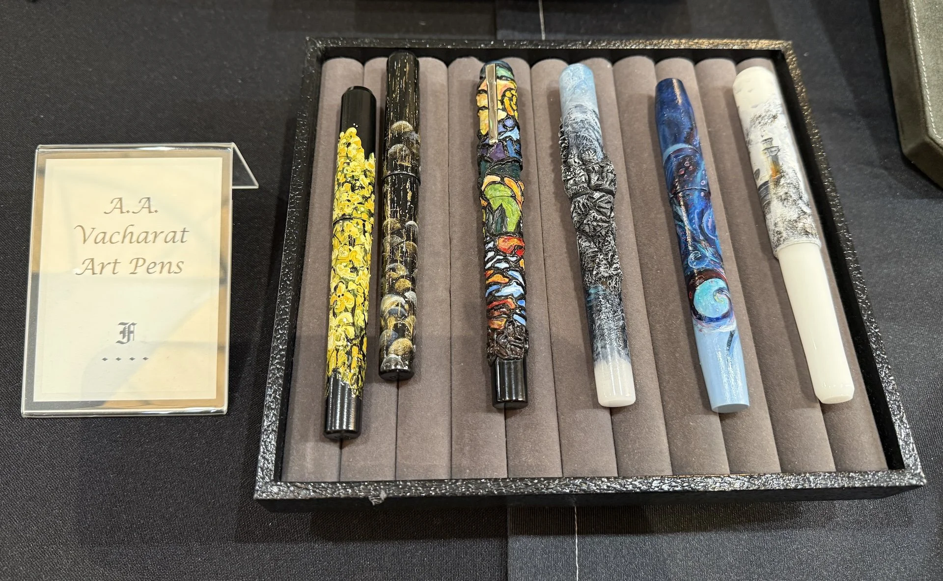 Some of the hand-painted Franklin-Christoph pens by A.A. Vacharat - guess which two were sold at the show?