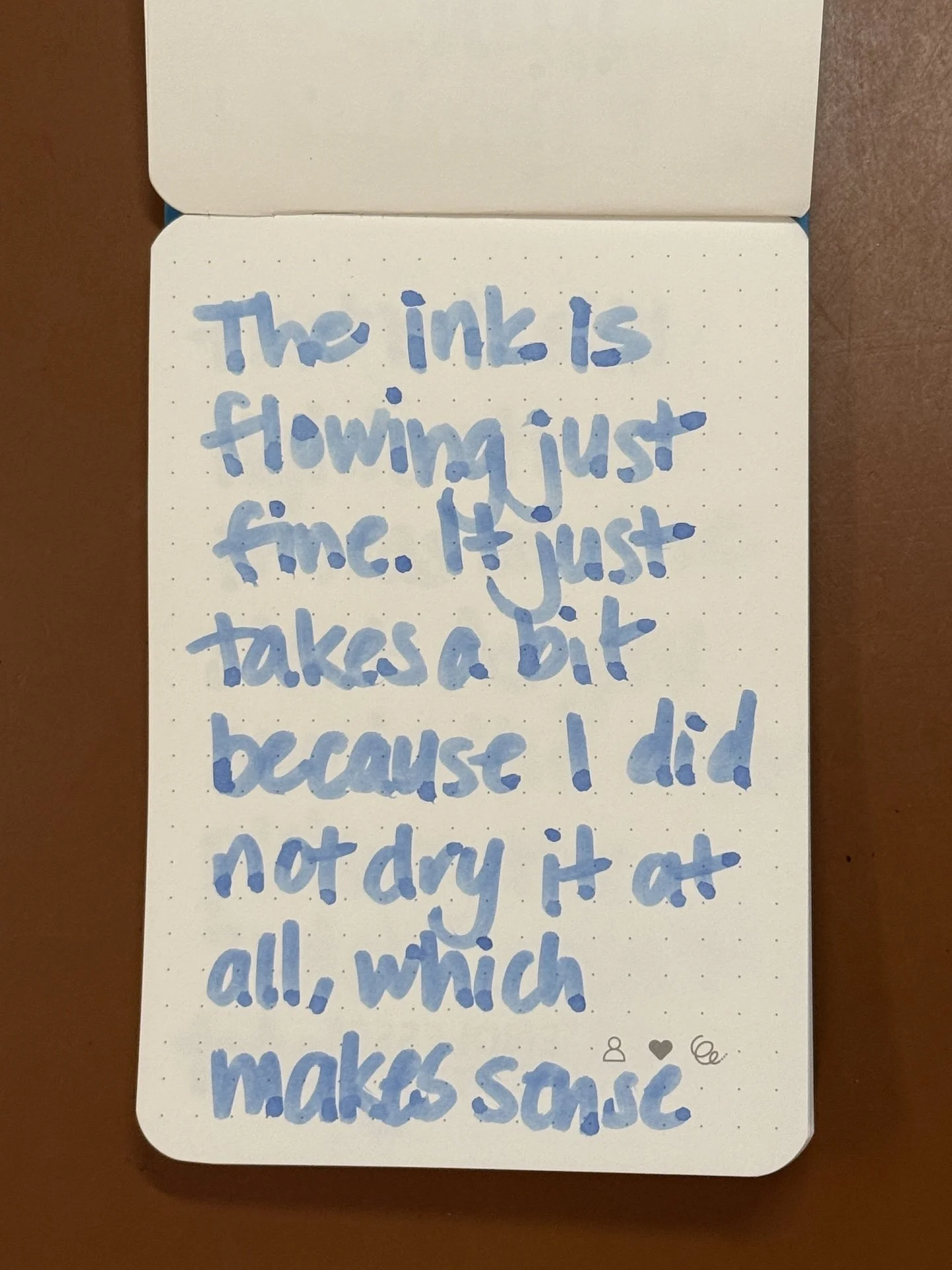 The ink is flowing just fine. It just takes a bit because I did not dry it at all, which makes sense.