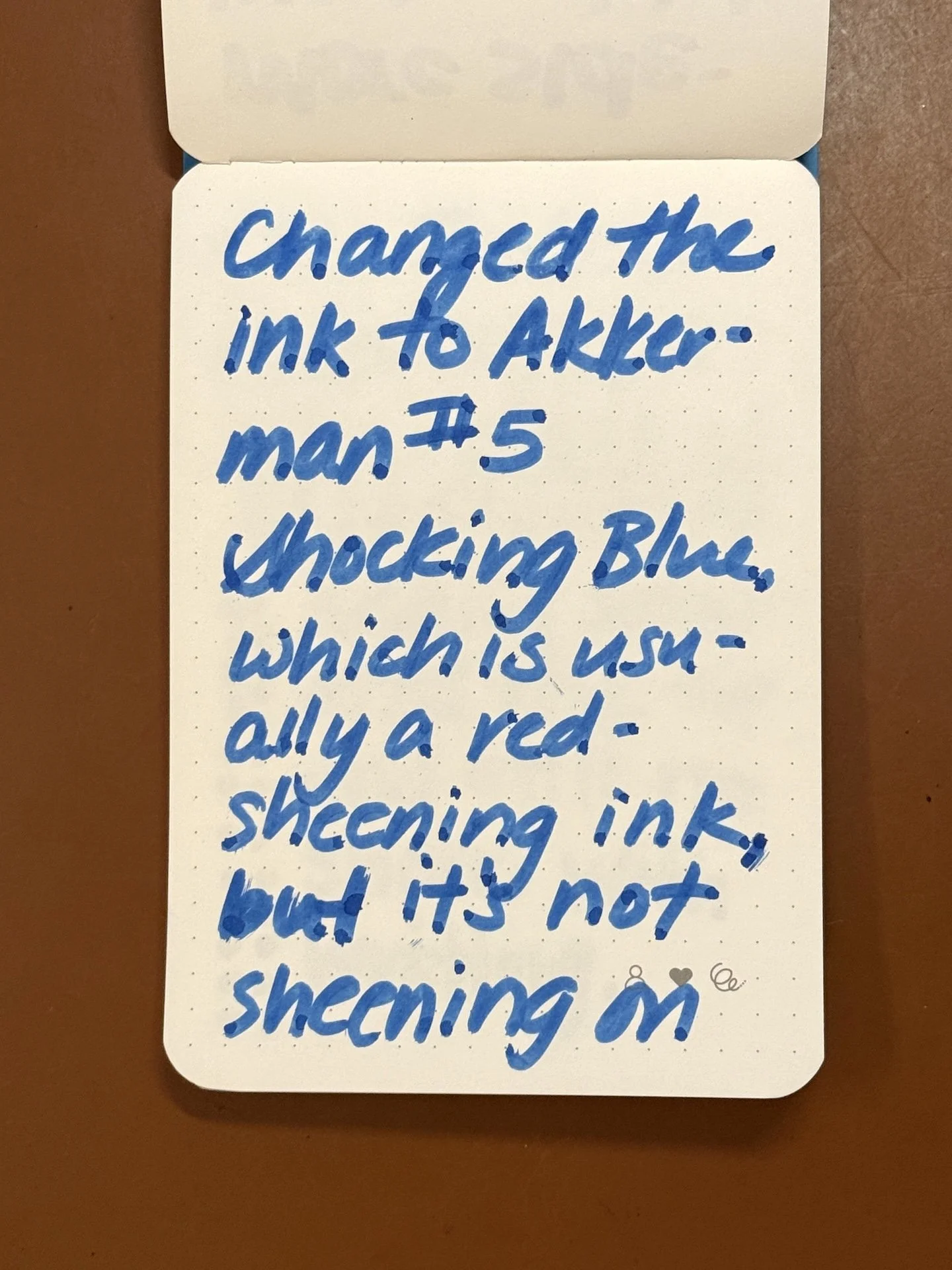 Changed the ink to Akkerman #5 Shocking Blue, which is usually a red-sheening ink, but it’s not sheening on ...