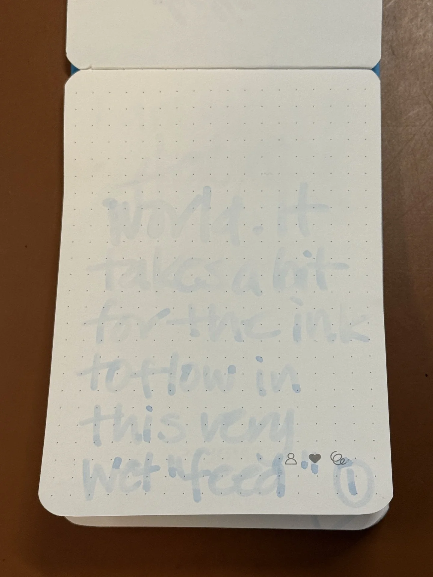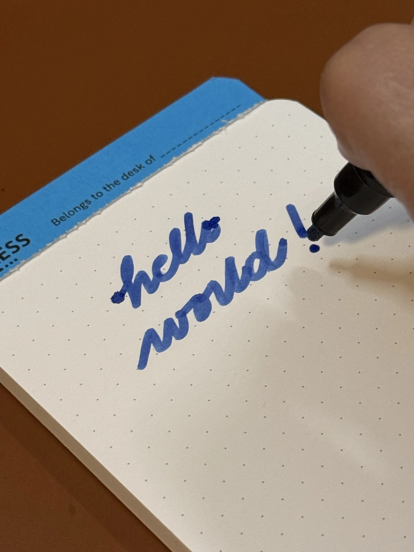 Yes, this is barely legible because the tip or “wick is still saturated with water. The text reads “Hello world. It takes a bit for the ink to flow in this very wet ‘feed’.