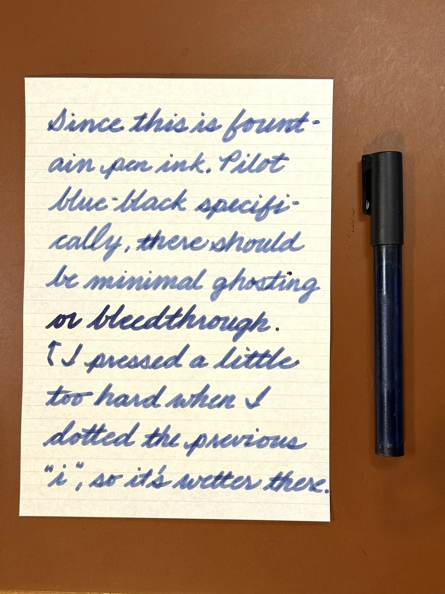 Considering the ink is fountain pen ink and the paper is fountain pen friendly, it didn’t ghost or bleed through on the back.