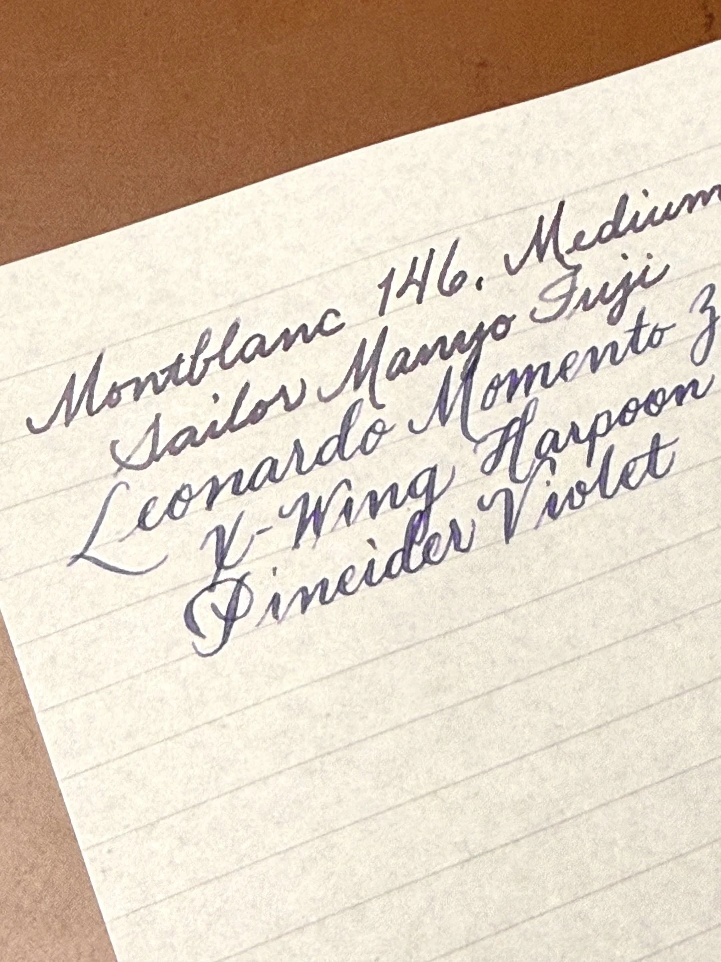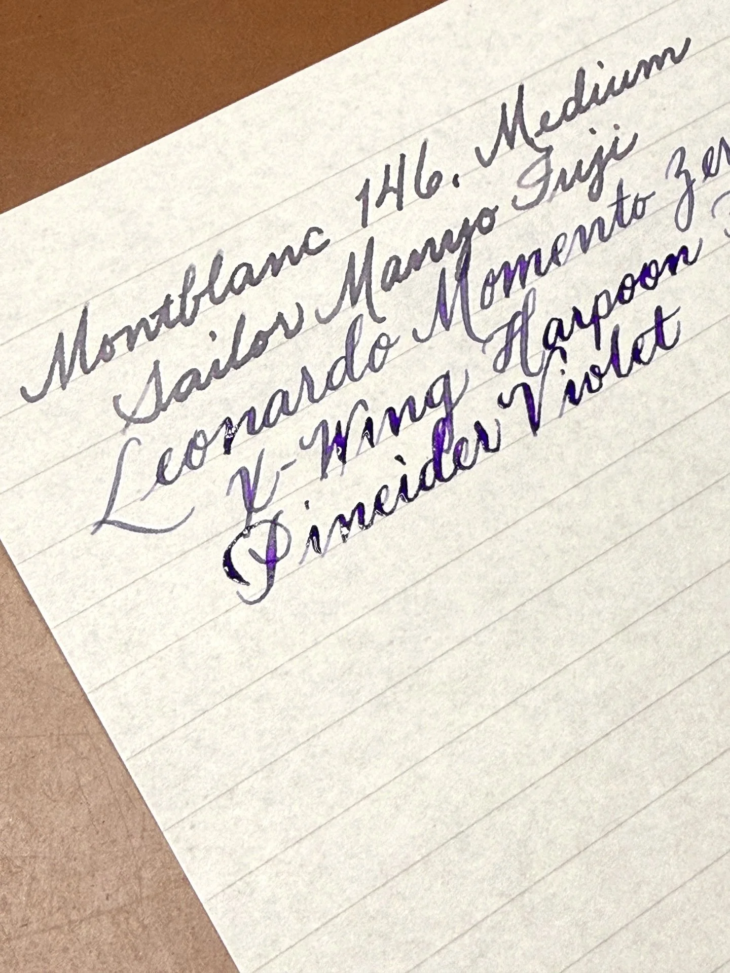 Laying down the wet lines from Stylosuite’s Extra Fine X-Wing Harpoon flex nib and Pineider Violet.