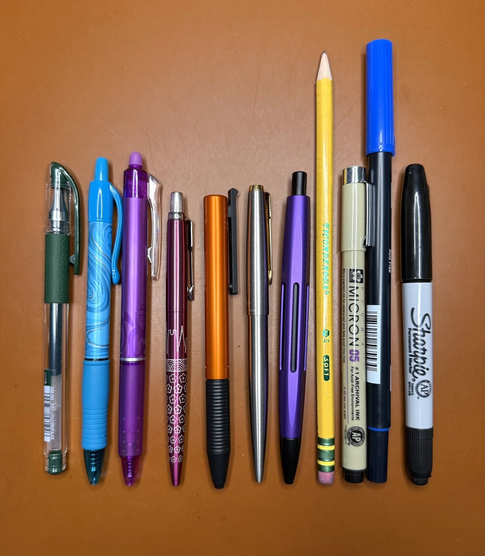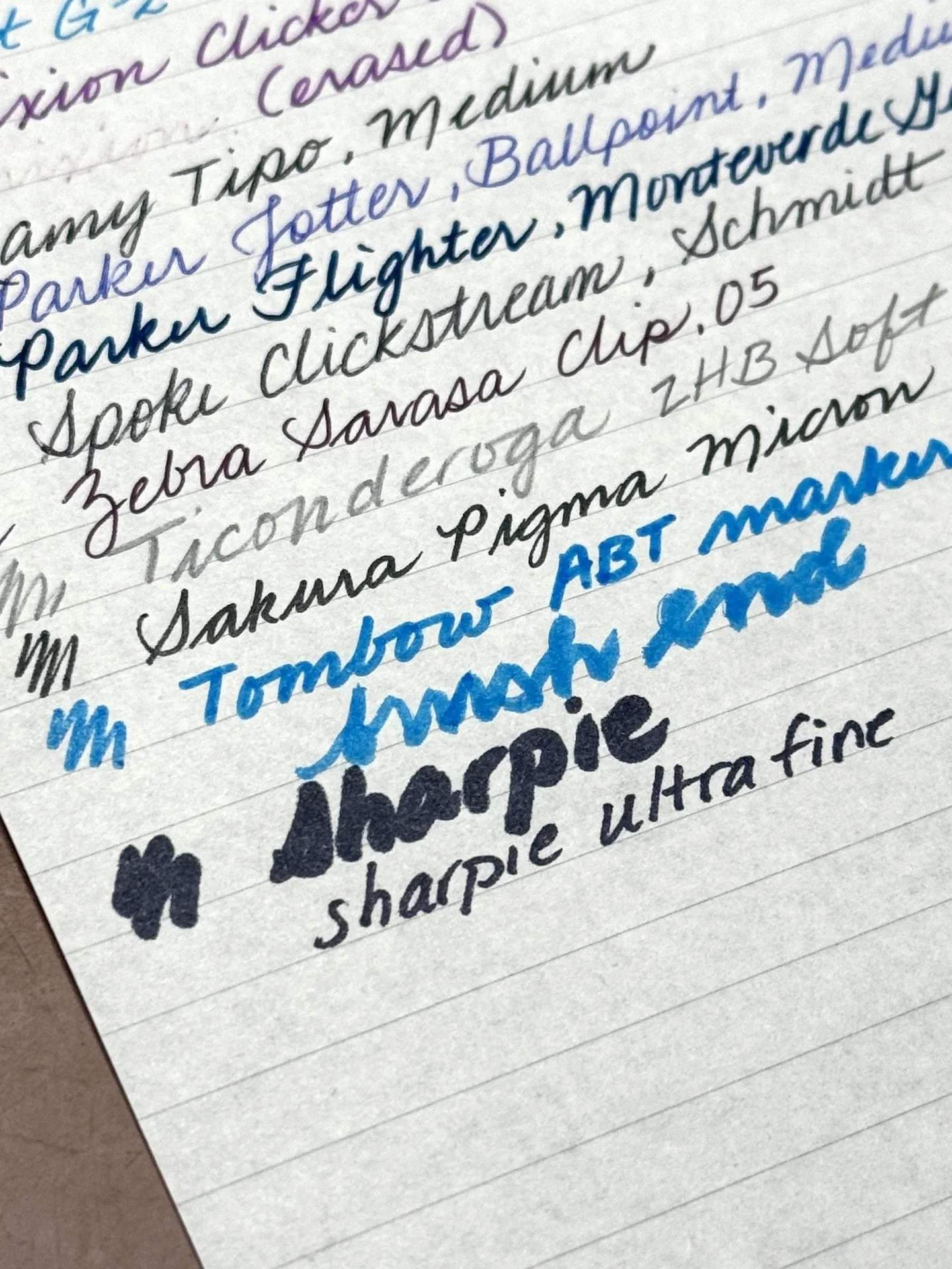 Not one to waste paper, I wrote with the above pens/pencil/markers and it handled most of them just fine. Wanna guess the troublemakers?