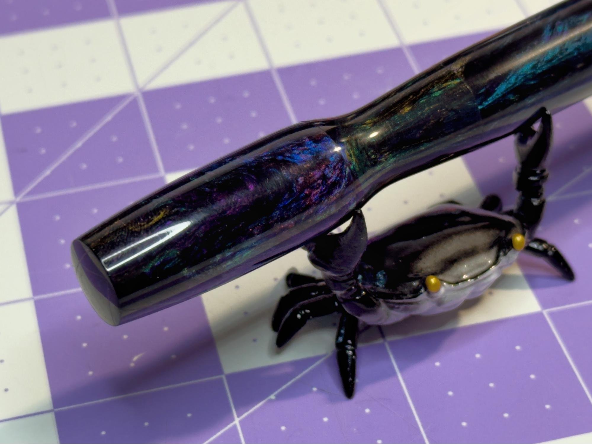 This particular Noldor, MY Noldor, was crafted from a sparkling dark resin mix with tones of purple, blue, red, and gold throughout. There were quite a few runners-up on the table (and online.)